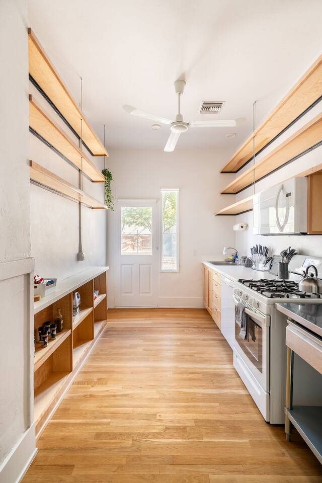 The mid century modern decor gives this historic bungalow a fresh ambiance. It has everything you need for a 2 night or month long stay. The kitchen is fully equipped with anything you might need for a home cooked dinner. Enjoy a relaxing evening watching a movie on the 60" smart tv. The bedroom features a king size bed with a hybrid memory foam mattress. Top features: -King Size Bed -60” Smart TV (w/ standard cable service) -Fast Internet -3 blocks from the heart of Downtown Tucson -3 minute walk to Tucson Convention Center -6 minute drive to the University of Arizona TPT License #21550337
