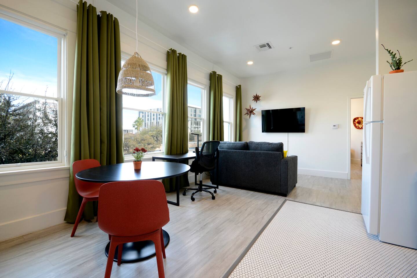 Top features: - Queen Memory Foam Bed - 55” Smart TV (no cable) - Fast Internet - Steps away from 20+ restaurants that are within easy walking distance - Multistory parking lot behind apt building (Pennington Street Garage) Dance is in the iconic Arizona Hotel Building which was built in 1917 and added to the National Register of Historic Places on September 2003. It has all the amenities you will need to feel right at home and comfort you when you turn in for the night. The decor of this modern loft is inspired by the hispanic culture. ** Reservation does NOT include parking nor streaming services ** TPT License #21550337