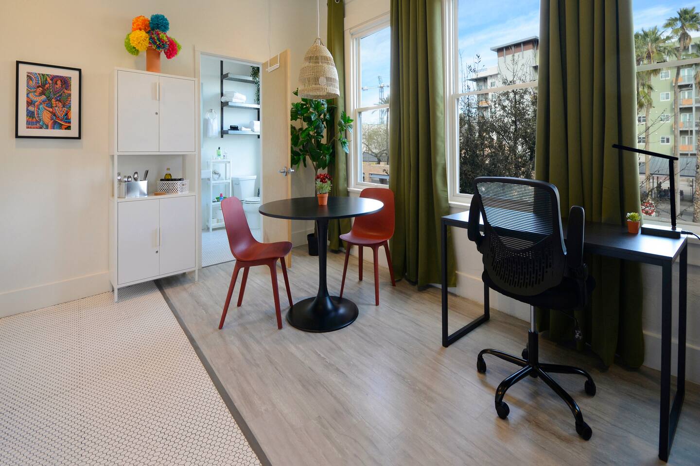Located in the heart of downtown Tucson, this beautiful studio apartment named, DANCE, is steps away from popular restaurants, award winning local microbreweries (some have beautiful patios with great ambiance), local grocer, coffeehouses, cultural points of interest, Sun Link street car stop and much more. The Sun Link (aka Tucson Streetcar) is a single line system that connects the University of Arizona, Main Gate, 4th Ave, downtown Tucson, Tucson Convention Center and the Mercado District.