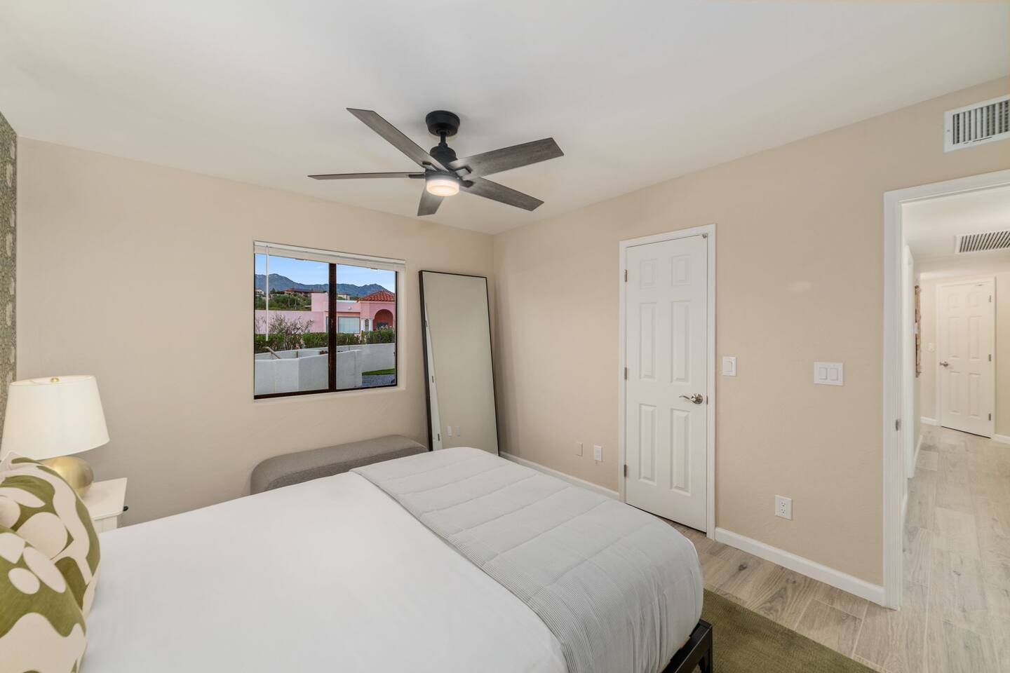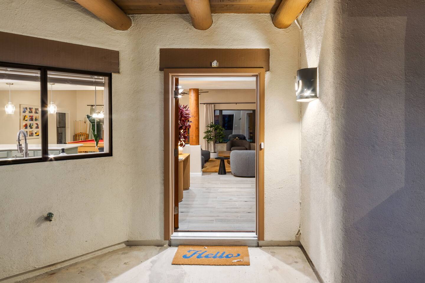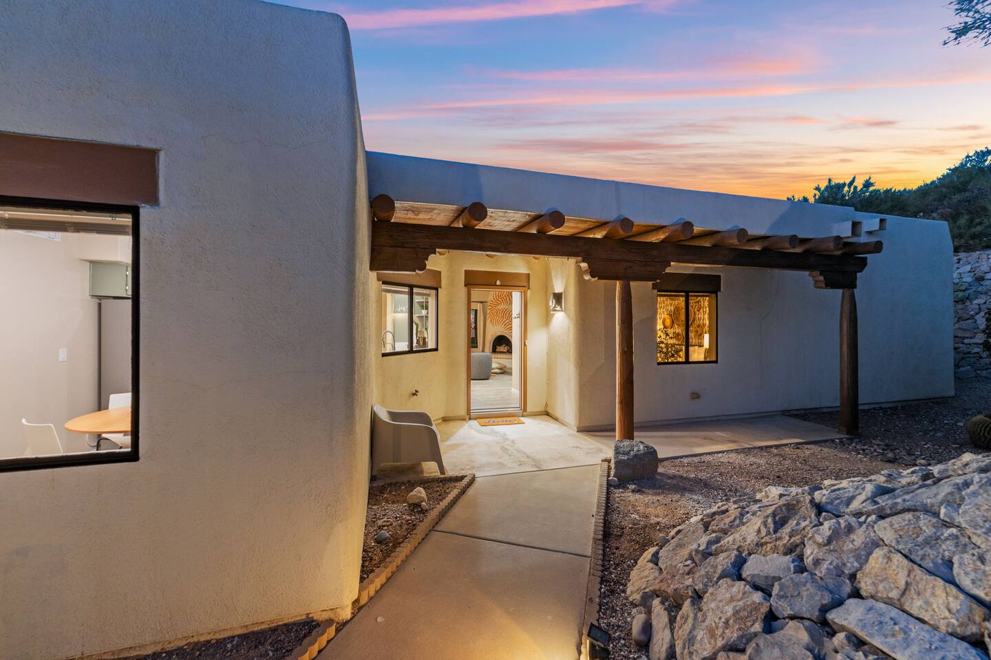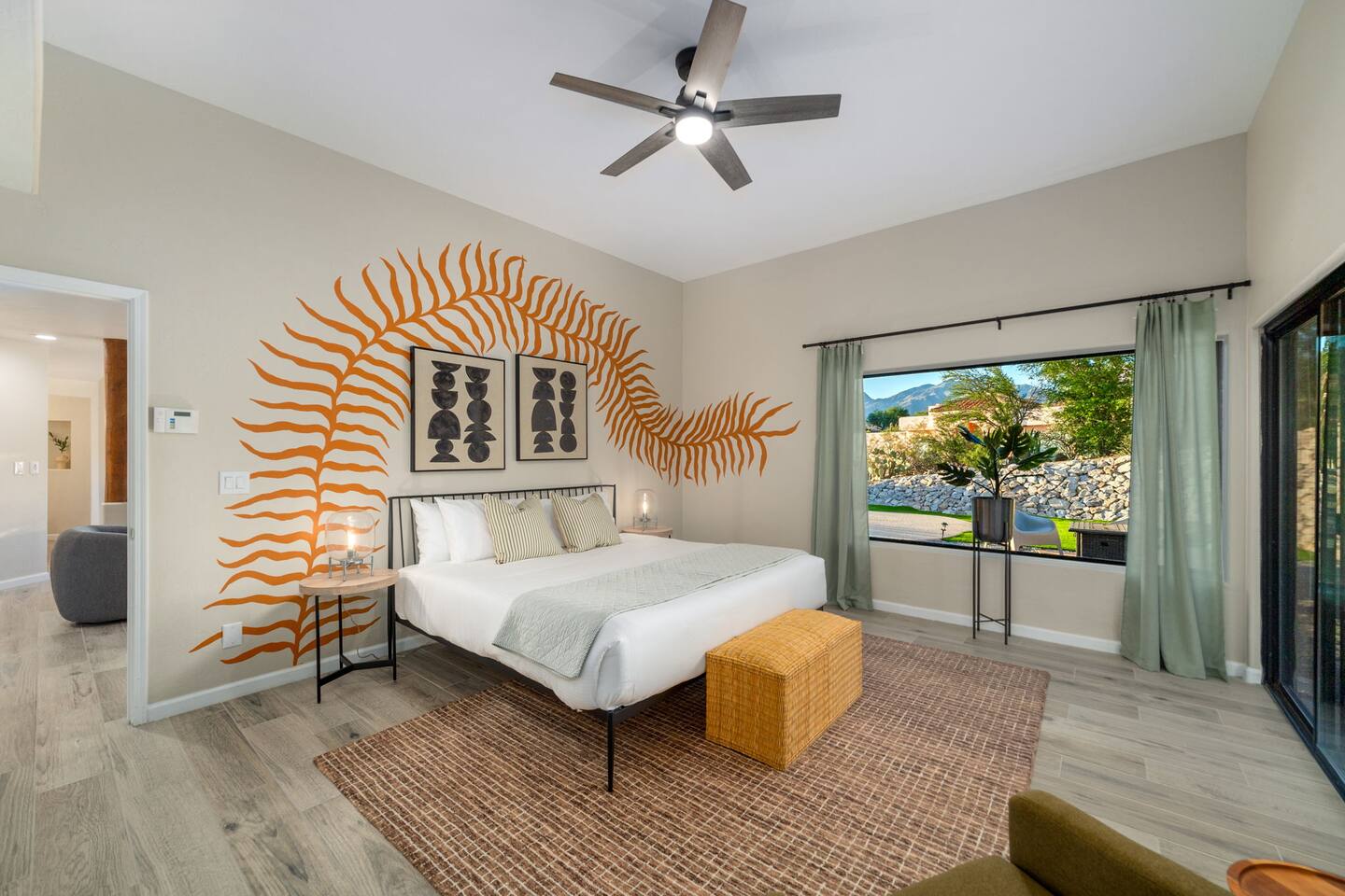 Nestled in the heart of the Rio Verde Vista II neighborhood, this inviting 2031 sq ft home offers a serene retreat in Tucson, Arizona. Located at the crossroads of E River Rd and N Craycroft Rd, this property sits on a generous .44-acre lot, surrounded by the natural beauty of the desert landscape. Step inside and be welcomed by a thoughtfully designed space that balances comfort and style. The open-concept layout is perfect for families or slightly larger groups, offering a seamless flow between the living areas. The bright and airy living room, with its large windows, brings the outdoors in, allowing guests to soak in the stunning views of the desert terrain. The warmth of the Vega beams adds a touch of Southwestern charm, making this space feel both cozy and elegant. Relax by the beehive fireplace, where you can unwind after a day of exploration. The living area also features a comfortable couch and chairs, creating an inviting space to gather with loved ones. Just beyond, a pool table offers a bit of friendly competition, with the sparkling pool serving as a picturesque backdrop. The modern dining area, with seating for six, is perfect for enjoying meals together. Adjacent to the dining area is a fully stocked kitchen, equipped with everything you need to whip up your favorite dishes. Natural light floods the kitchen, bath, and garage through skylights, enhancing the bright and welcoming atmosphere. The home offers four spacious bedrooms, each designed with your comfort in mind. The master suite is a true sanctuary, featuring a king-sized bed, an en-suite bathroom with a stunning shower, and a luxurious soaking tub. The expansive master bedroom also provides ample space to stretch and practice morning yoga, setting the tone for a peaceful day ahead. The additional three bedrooms are equally inviting, each furnished with a queen-sized bed, ensuring a restful night's sleep for everyone. Step outside to discover a newly renovated backyard, where tranquility meets outdoor fun. The beautiful pool beckons for a refreshing dip, while the firepit invites you to gather around and share stories under the stars. With plenty of seating and lounging areas, the outdoor space is perfect for both relaxation and entertainment. This home is designed to offer a blend of comfort, style, and serenity, making it the perfect retreat for your Tucson getaway. Whether you're here to explore the vibrant city or simply unwind in a peaceful setting, this property provides the ideal backdrop for an unforgettable experience.