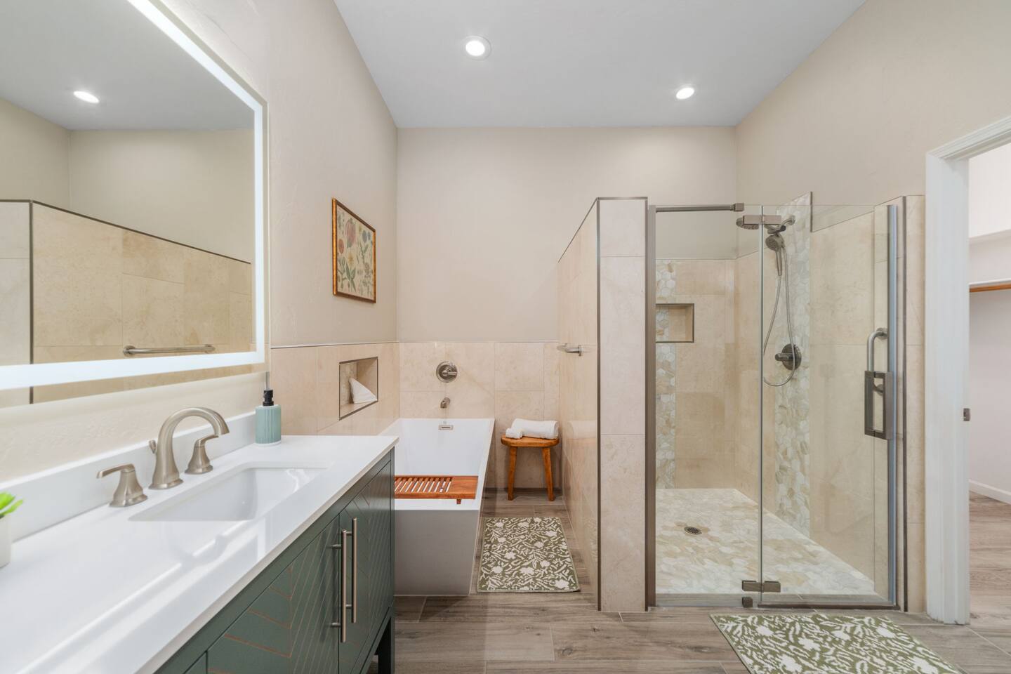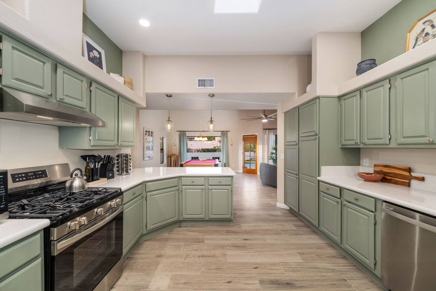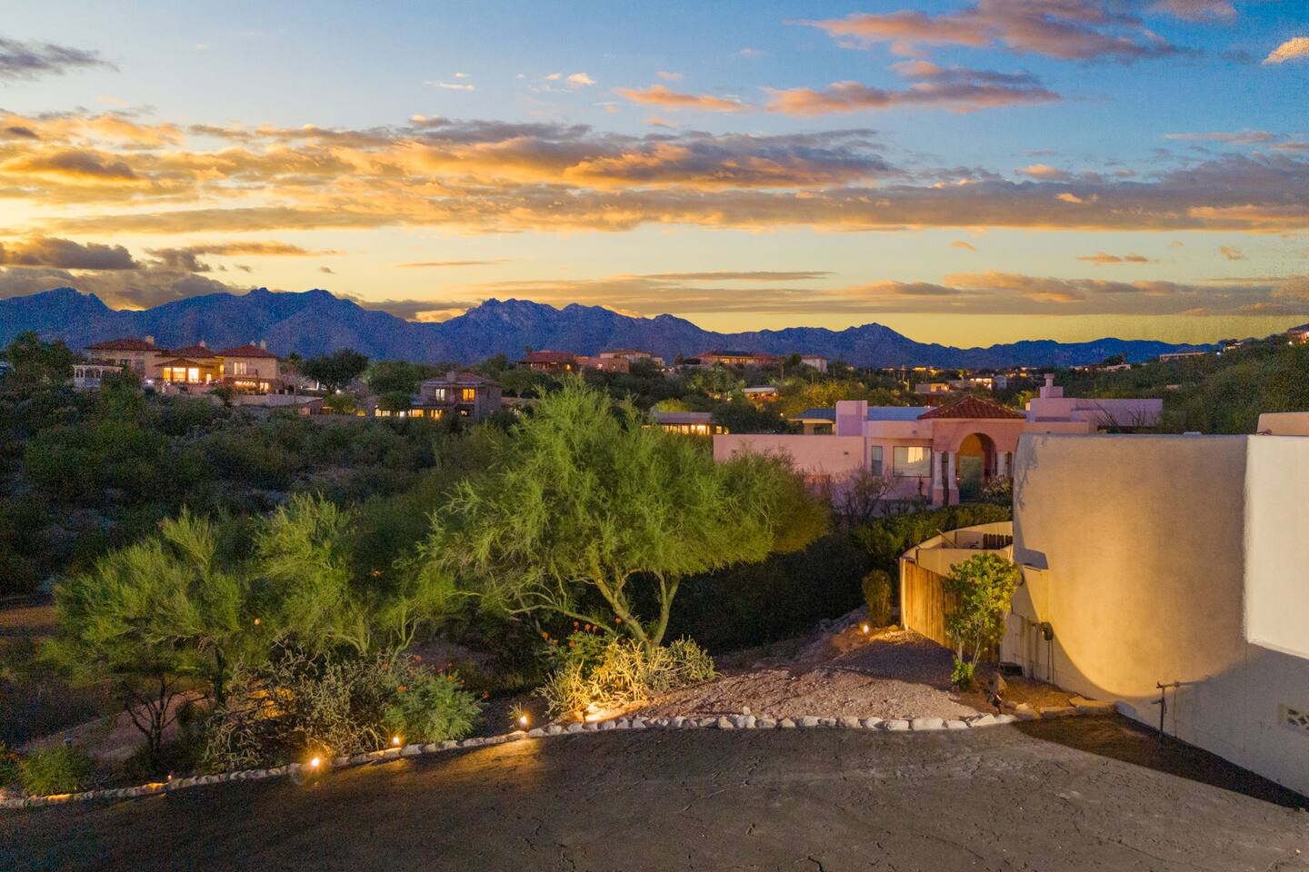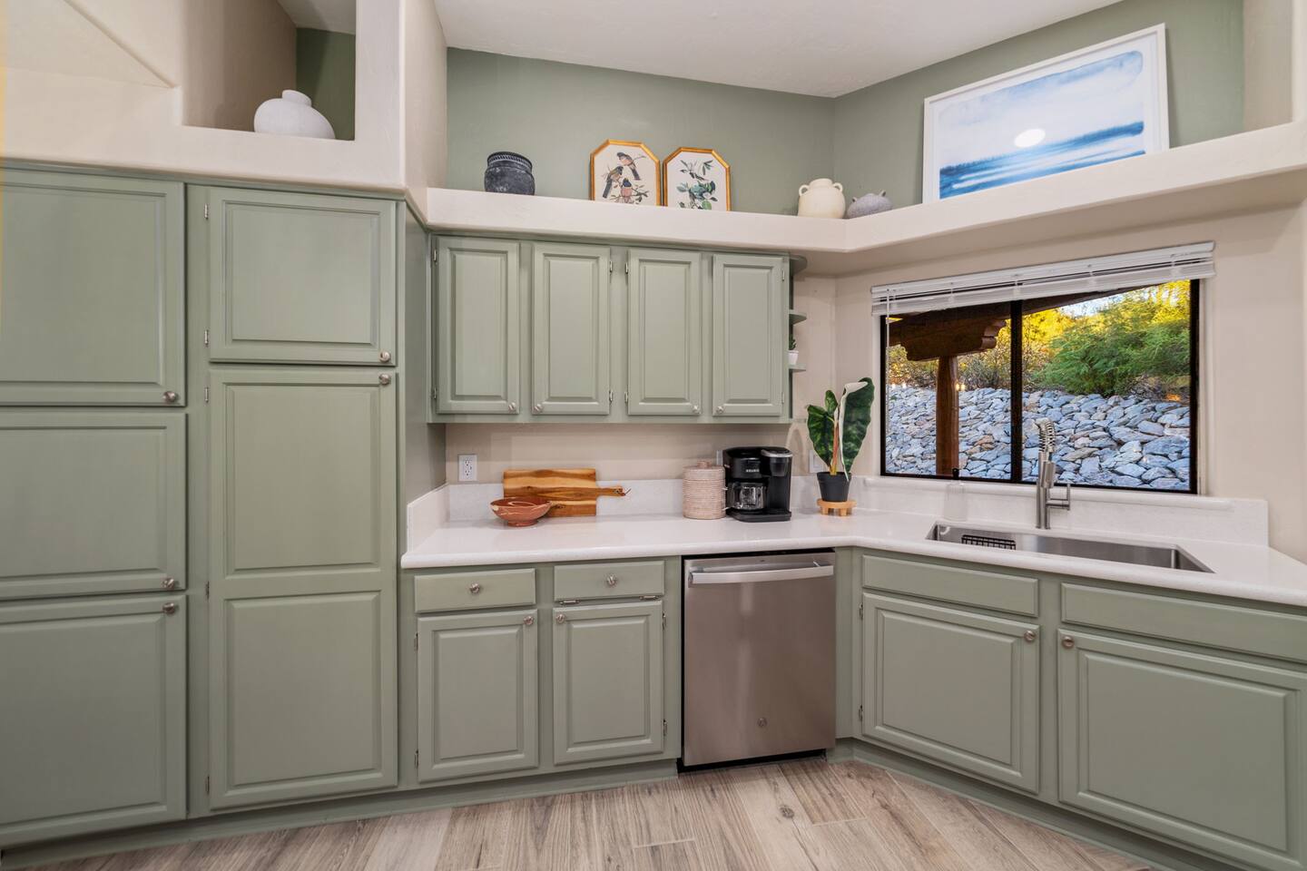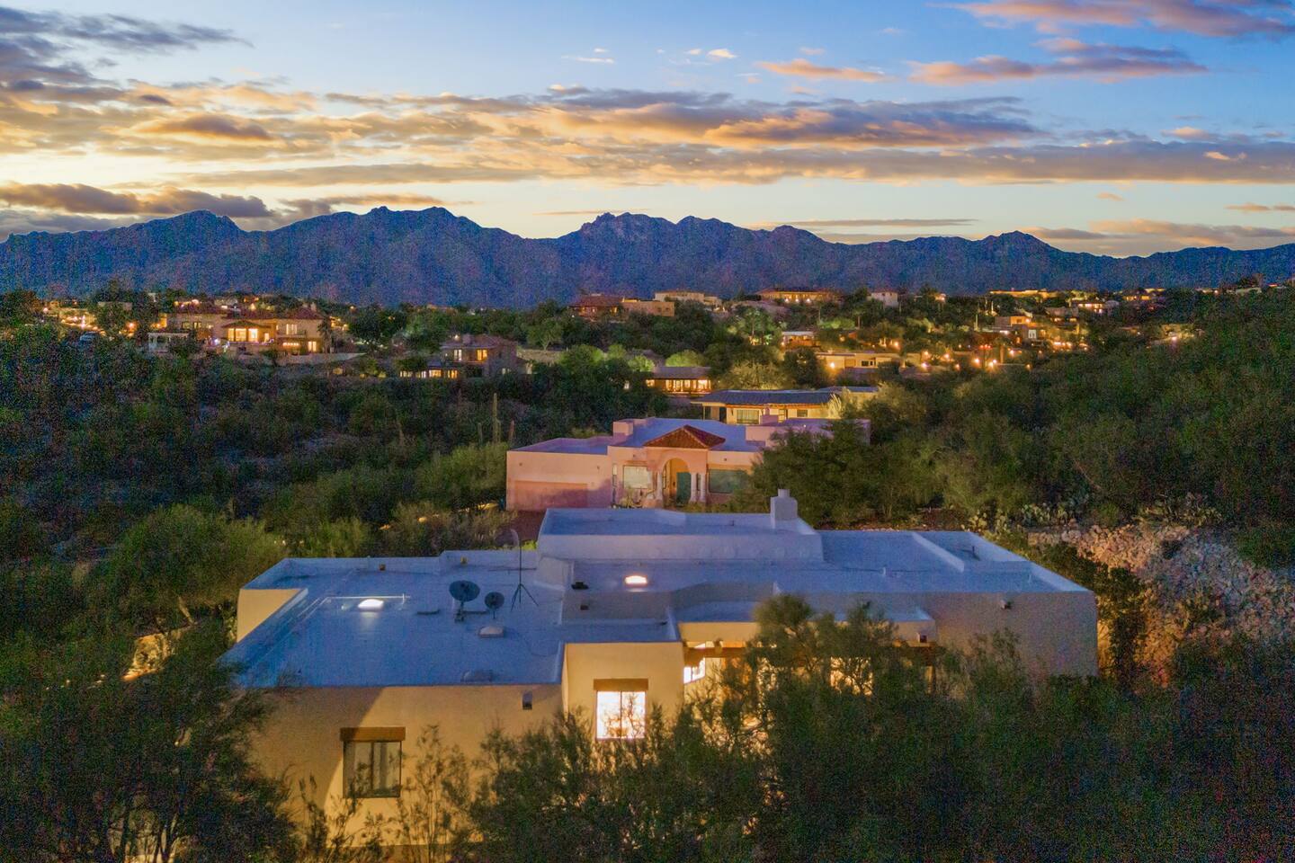 Nestled in the heart of the Rio Verde Vista II neighborhood, this inviting 2031 sq ft home offers a serene retreat in Tucson, Arizona. Located at the crossroads of E River Rd and N Craycroft Rd, this property sits on a generous .44-acre lot, surrounded by the natural beauty of the desert landscape. Step inside and be welcomed by a thoughtfully designed space that balances comfort and style. The open-concept layout is perfect for families or slightly larger groups, offering a seamless flow between the living areas. The bright and airy living room, with its large windows, brings the outdoors in, allowing guests to soak in the stunning views of the desert terrain. The warmth of the Vega beams adds a touch of Southwestern charm, making this space feel both cozy and elegant. Relax by the beehive fireplace, where you can unwind after a day of exploration. The living area also features a comfortable couch and chairs, creating an inviting space to gather with loved ones. Just beyond, a pool table offers a bit of friendly competition, with the sparkling pool serving as a picturesque backdrop. The modern dining area, with seating for six, is perfect for enjoying meals together. Adjacent to the dining area is a fully stocked kitchen, equipped with everything you need to whip up your favorite dishes. Natural light floods the kitchen, bath, and garage through skylights, enhancing the bright and welcoming atmosphere. The home offers four spacious bedrooms, each designed with your comfort in mind. The master suite is a true sanctuary, featuring a king-sized bed, an en-suite bathroom with a stunning shower, and a luxurious soaking tub. The expansive master bedroom also provides ample space to stretch and practice morning yoga, setting the tone for a peaceful day ahead. The additional three bedrooms are equally inviting, each furnished with a queen-sized bed, ensuring a restful night's sleep for everyone. Step outside to discover a newly renovated backyard, where tranquility meets outdoor fun. The beautiful pool beckons for a refreshing dip, while the firepit invites you to gather around and share stories under the stars. With plenty of seating and lounging areas, the outdoor space is perfect for both relaxation and entertainment. This home is designed to offer a blend of comfort, style, and serenity, making it the perfect retreat for your Tucson getaway. Whether you're here to explore the vibrant city or simply unwind in a peaceful setting, this property provides the ideal backdrop for an unforgettable experience.