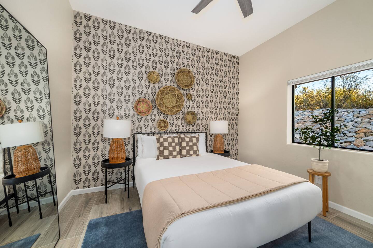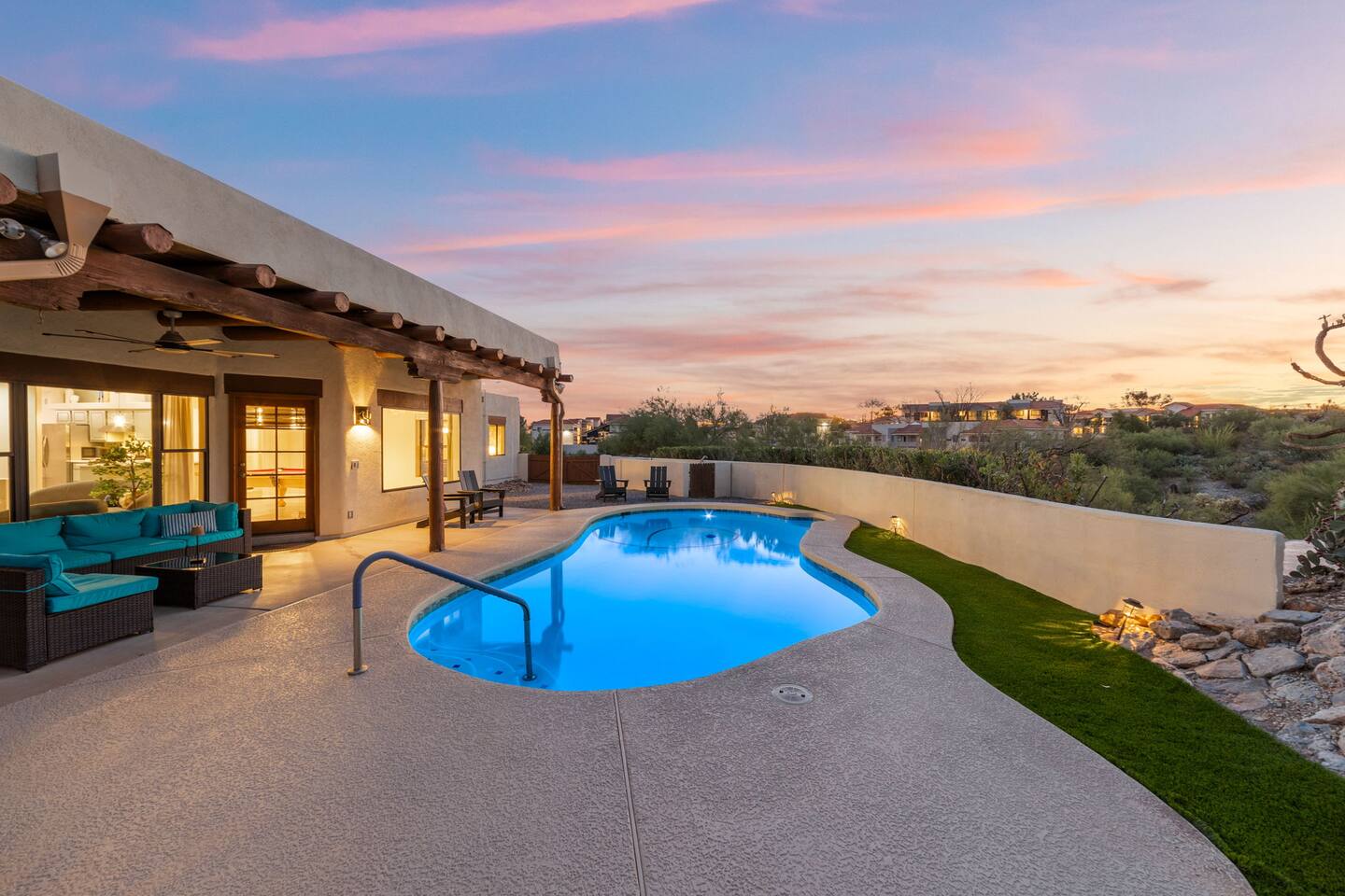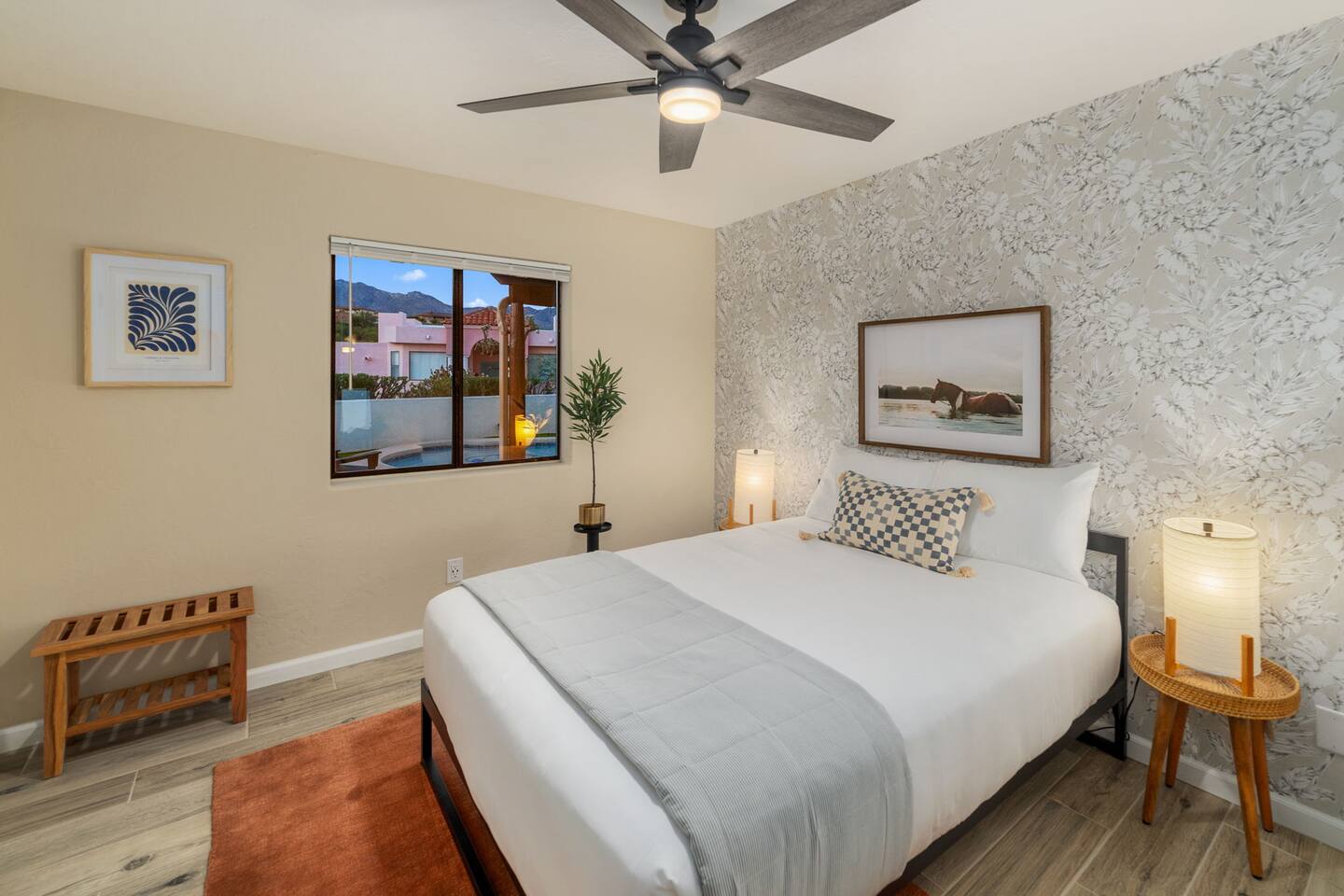 Nestled in Tucson's Rio Verde Vista II, this gorgeous home offers a serene escape. Enjoy an open-concept layout with a bright living room, cozy beehive fireplace, and a pool table overlooking the pool. The master suite features a king bed and spa-like bath. Outside, relax by the pool and firepit in the newly renovated backyard. Perfect for families and groups seeking comfort and style. This home was carefully curated by a designer!