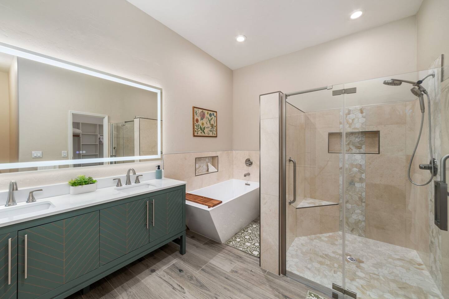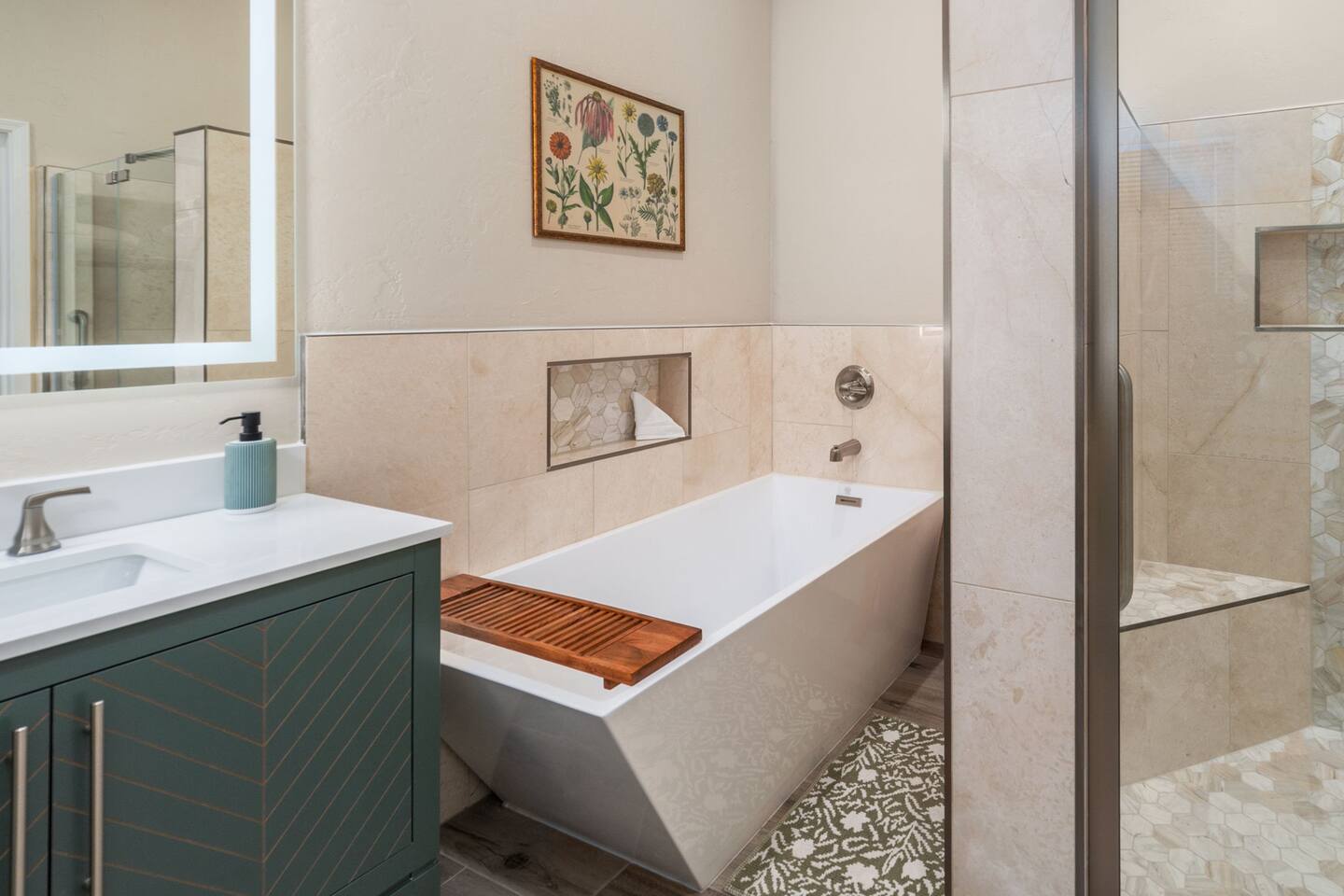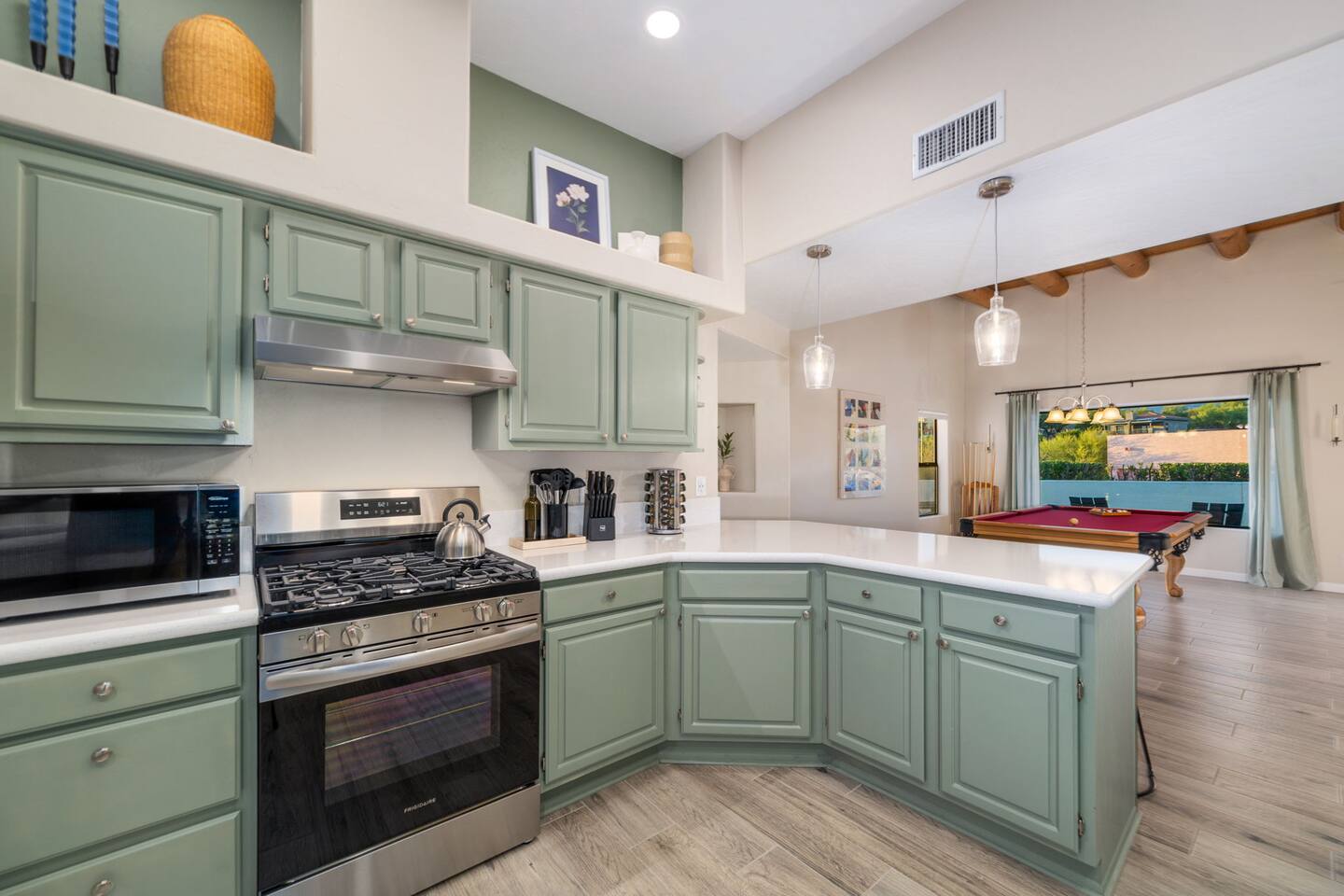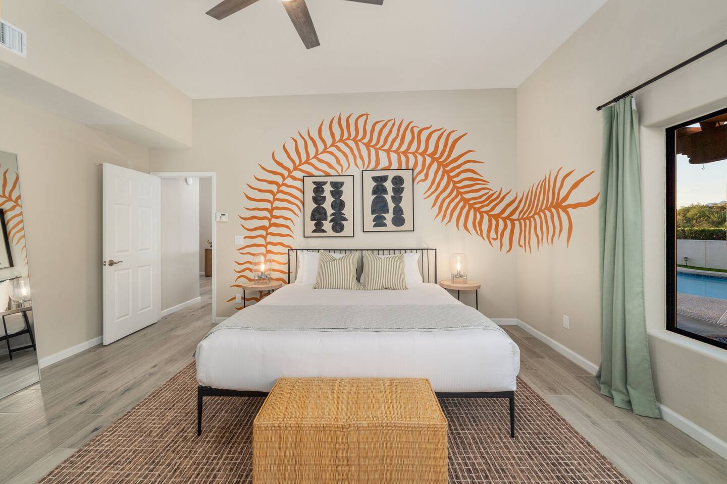 Nestled in Tucson's Rio Verde Vista II, this gorgeous home offers a serene escape. Enjoy an open-concept layout with a bright living room, cozy beehive fireplace, and a pool table overlooking the pool. The master suite features a king bed and spa-like bath. Outside, relax by the pool and firepit in the newly renovated backyard. Perfect for families and groups seeking comfort and style. This home was carefully curated by a designer!