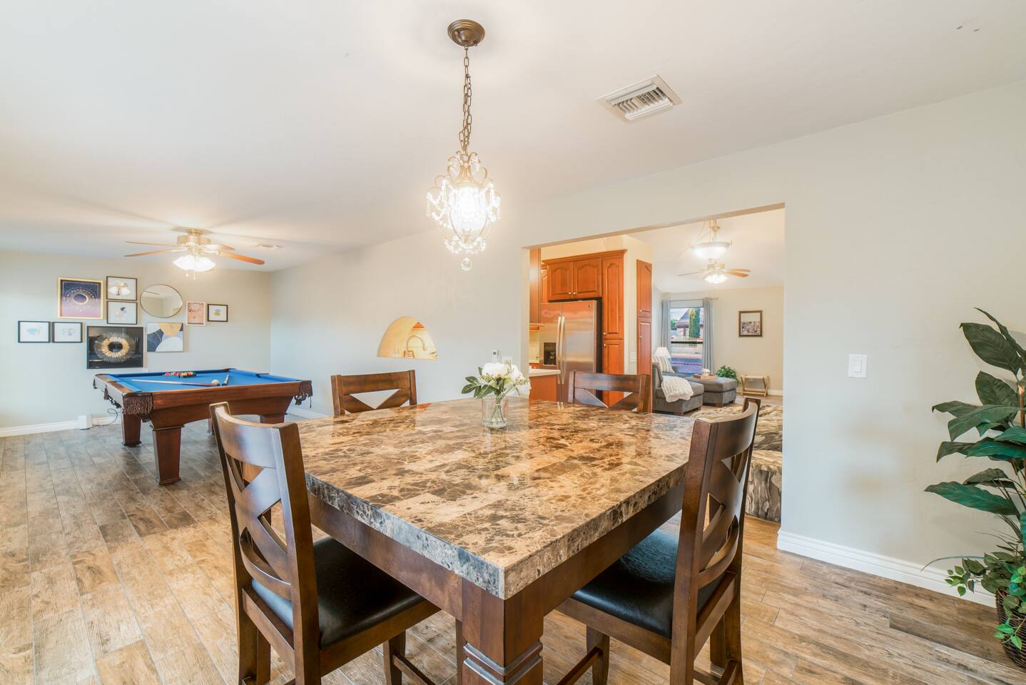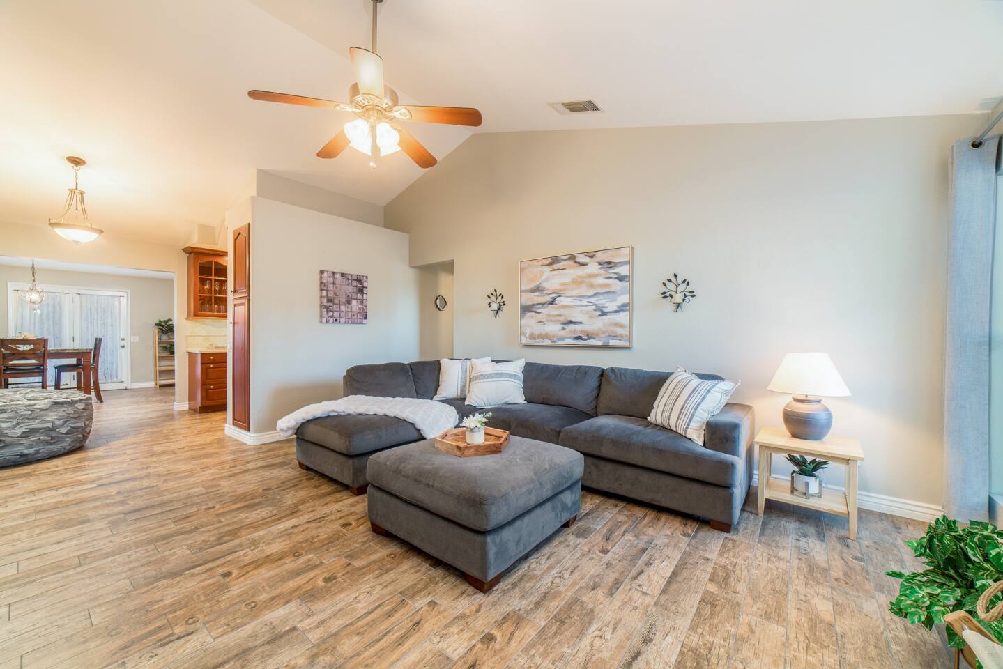 Looking for a spacious and convenient home to relax ? Look no further! This 4 bedroom, 2 bathroom house w is located in a prime location, close to colleges, the I-10 freeway, downtown, shopping, and restaurants. The open layout, vaulted ceilings, and ceiling fans create a comfortable and inviting atmosphere. The kitchen is fully equipped with everything a chef could need, appliances, granite countertops, plenty of cupboard space, and a pantry closet. The large pool table family room is perfect for relaxing and entertaining. The generously sized backyard provides plenty of room for activities. Perfect for a BBQ and bonfire This home also features a two-car garage, providing plenty of space for your vehicles. Don't miss out on the opportunity to make this property your new home.