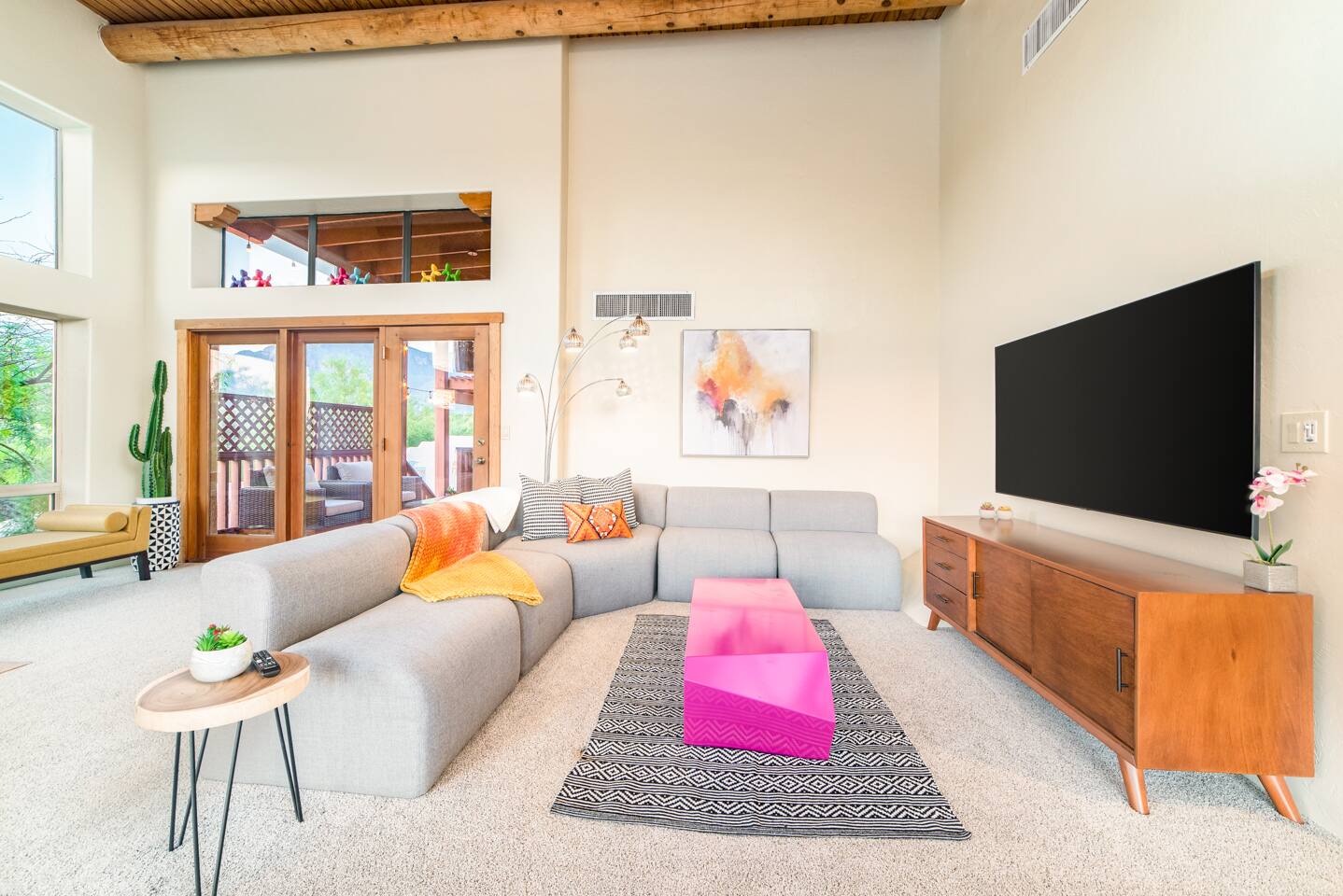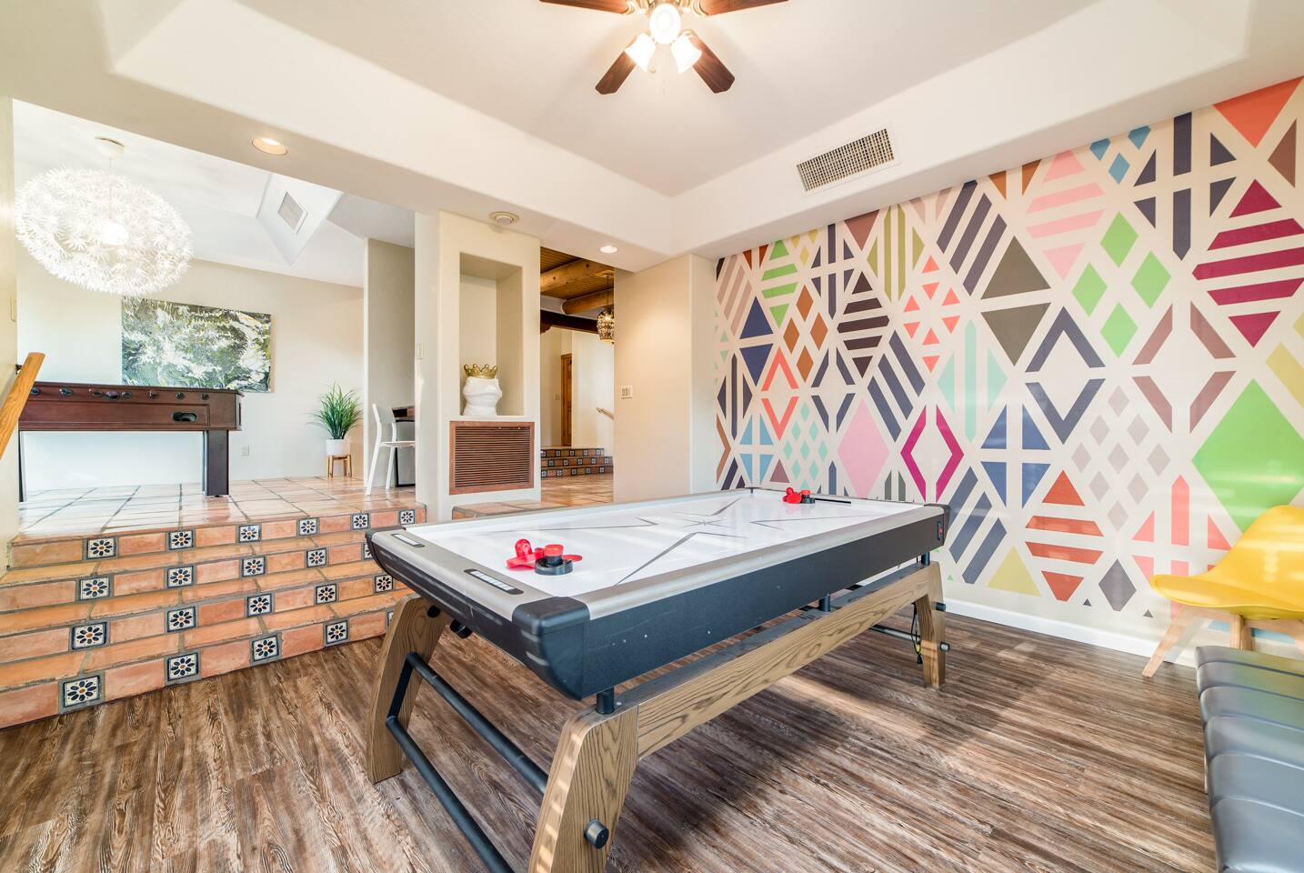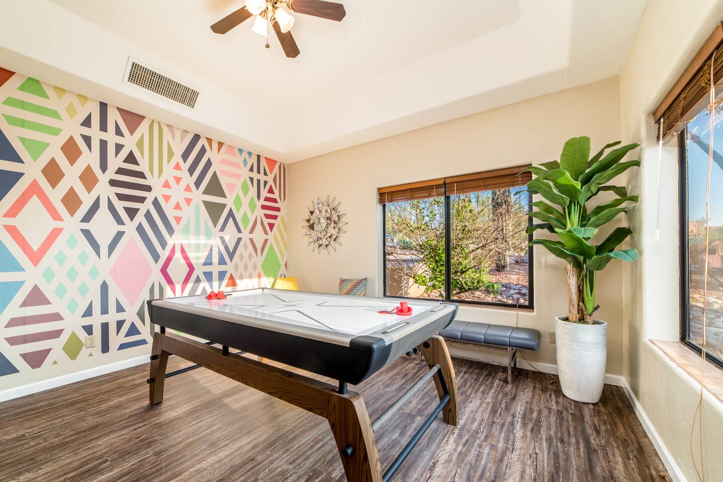 ♦ Private Backyard Built for Entertainment: Pool, BBQ, Lounge Seating, and Dining Seating ♦ Games for All Ages : Air Hockey Table, Foosball Table, and Board Games ♦ 2 Desks for Remote Work or School ♦ 2 Car Garage ♦ 2 70” 4K TVs ♦ Memory Foam Mattresses and Premium Bedding ♦ 15 Minutes from Sabino Canyon ♦ 15 Minutes from University of Arizona ♦ 3 Minutes from Many Restaurants and Shopping at La Encantada Luxury Mall.