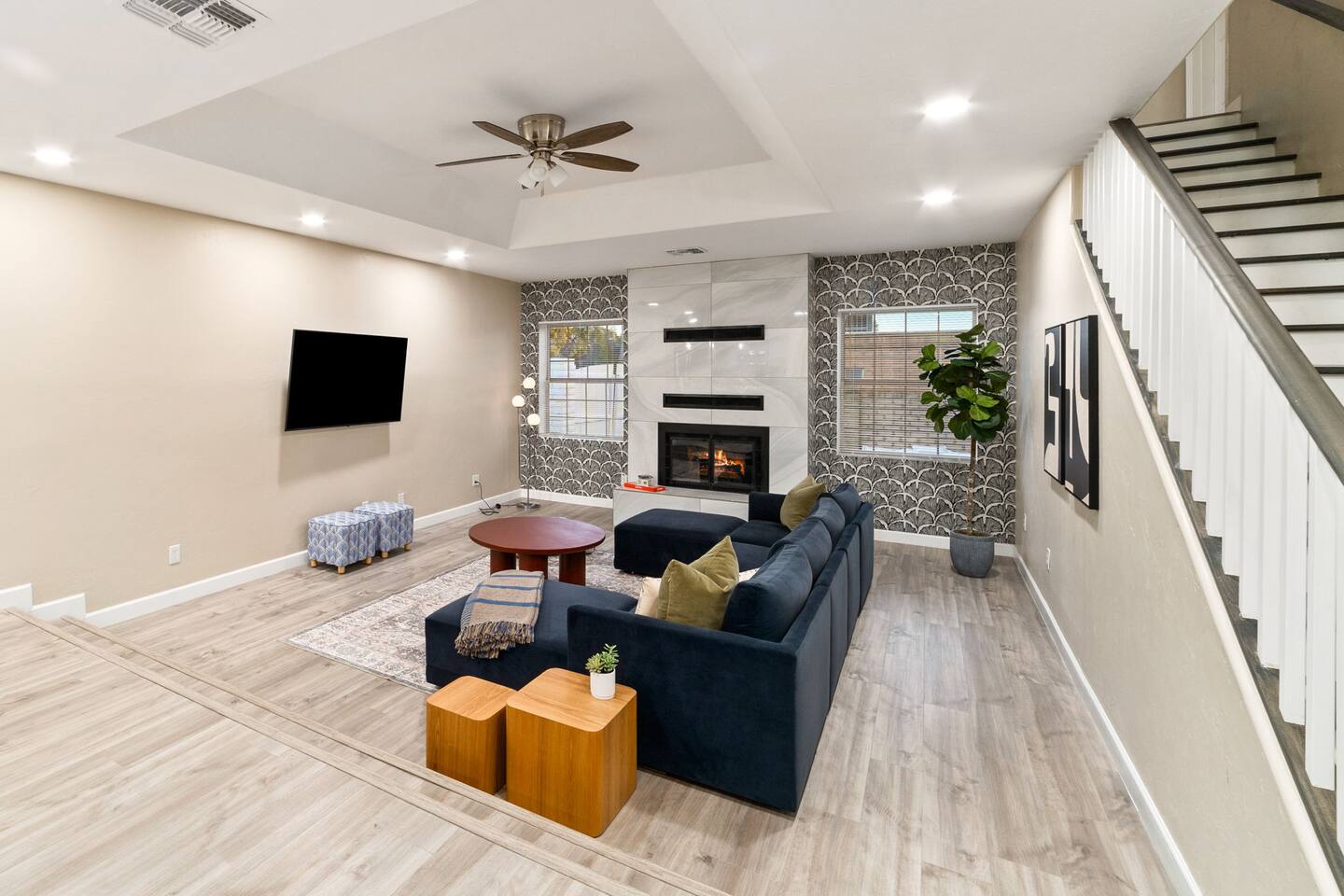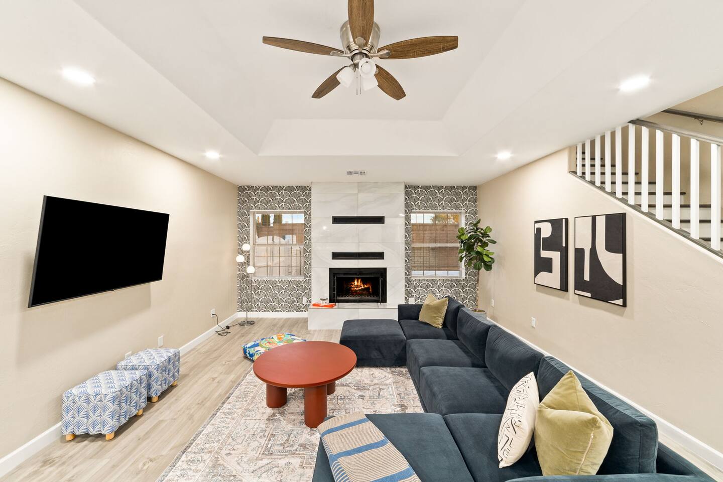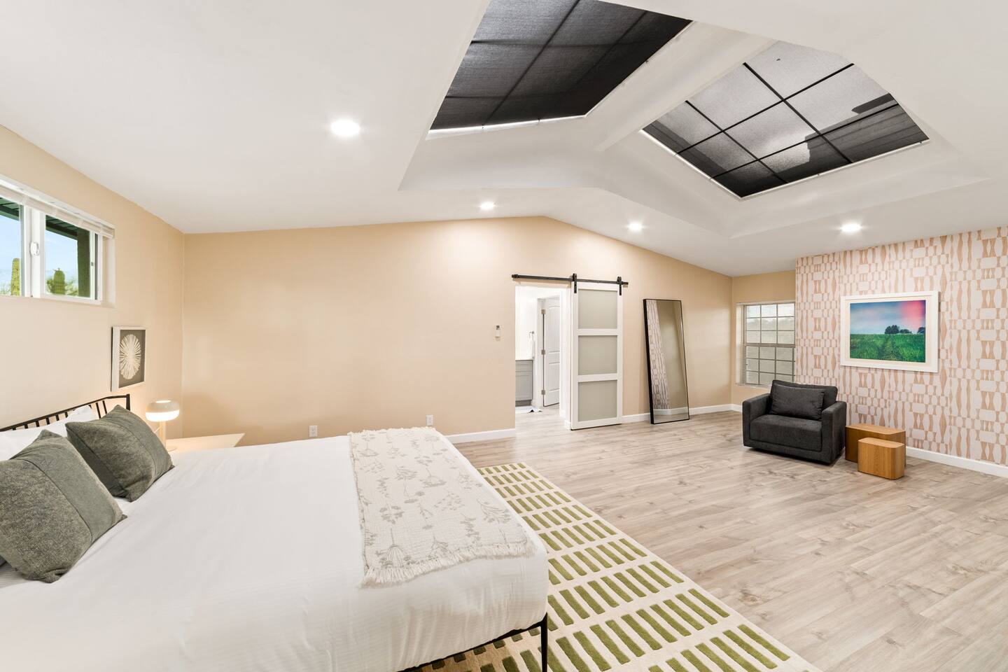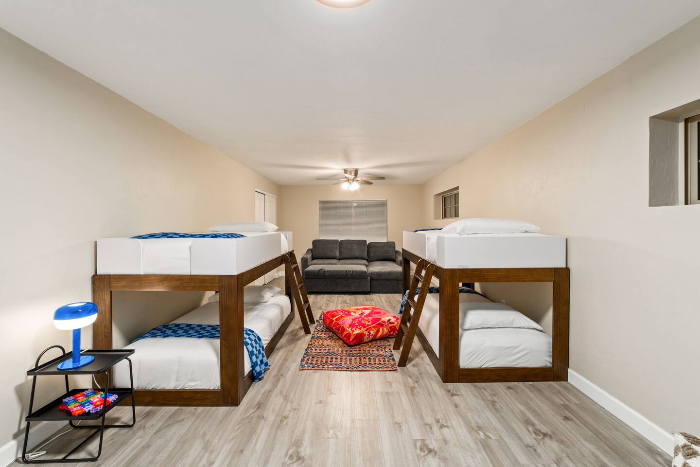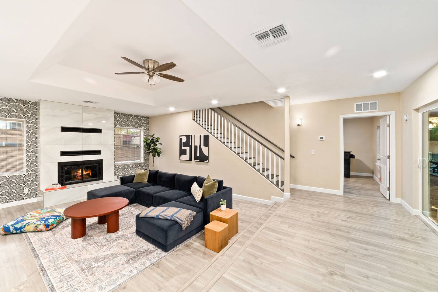 Welcome to our beautifully designed home in the heart of the Sabino Canyon area, located conveniently at the major cross streets of E Cloud Rd and N Sabino Canyon Rd. This home, crafted with comfort and style by a local interior designer, is perfect for larger groups and families seeking a memorable stay in Tucson. As you step inside, you'll be greeted by an open-concept living space that invites relaxation and fun. The living room features a comfortable sectional couch, a foosball table, board games, and a large TV, making it an ideal spot for both relaxation and entertainment. Adjacent to the living area is a modern dining space that comfortably seats six, perfect for family meals or gatherings. Just off the dining area, you'll find a pool table, adding to the home's entertainment options. The fully stocked kitchen is a chef's dream, equipped with everything you need to prepare delicious meals for your group. The home boasts six spacious bedrooms, each thoughtfully designed with your comfort in mind. The master bedroom, located upstairs for added privacy, is a true retreat. It features a king-sized bed, a cozy seating area, and ample space perfect for morning yoga. The two large skylights in the master bedroom allow you to wake up naturally with the sunrise, and you can enjoy your morning coffee on the private balcony. Bedrooms two and three each offer a king-sized bed for ultimate comfort, while bedrooms four and five are furnished with queen-sized beds. The sixth bedroom is perfect for kids or larger groups, with two bunk beds providing four single sleeping areas, a pull-out couch, and a vintage Pac-Man arcade game for endless fun. Outside, the home continues to impress with a beautiful large pool and a firepit, perfect for summer nights or chilly winter evenings. Whether you're looking to relax, entertain, or explore the beautiful surroundings of Sabino Canyon, this home provides the perfect setting for your stay in Tucson.Welcome to our beautifully designed home in the heart of the Sabino Canyon area, located conveniently at the major cross streets of E Cloud Rd and N Sabino Canyon Rd. This home, crafted with comfort and style by a local interior designer, is perfect for larger groups and families seeking a memorable stay in Tucson. As you step inside, you'll be greeted by an open-concept living space that invites relaxation and fun. The living room features a comfortable sectional couch, a foosball table, board games, and a large TV, making it an ideal spot for both relaxation and entertainment. Adjacent to the living area is a modern dining space that comfortably seats six, perfect for family meals or gatherings. Just off the dining area, you'll find a pool table, adding to the home's entertainment options. The fully stocked kitchen is a chef's dream, equipped with everything you need to prepare delicious meals for your group. The home boasts six spacious bedrooms, each thoughtfully designed with your comfort in mind. The master bedroom, located upstairs for added privacy, is a true retreat. It features a king-sized bed, a cozy seating area, and ample space perfect for morning yoga. The two large skylights in the master bedroom allow you to wake up naturally with the sunrise, and you can enjoy your morning coffee on the private balcony. Bedrooms two and three each offer a king-sized bed for ultimate comfort, while bedrooms four and five are furnished with queen-sized beds. The sixth bedroom is perfect for kids or larger groups, with two bunk beds providing four single sleeping areas, a pull-out couch, and a vintage Pac-Man arcade game for endless fun. Outside, the home continues to impress with a beautiful large pool. Whether you're looking to relax, entertain, or explore the beautiful surroundings of Sabino Canyon, this home provides the perfect setting for your stay in Tucson.