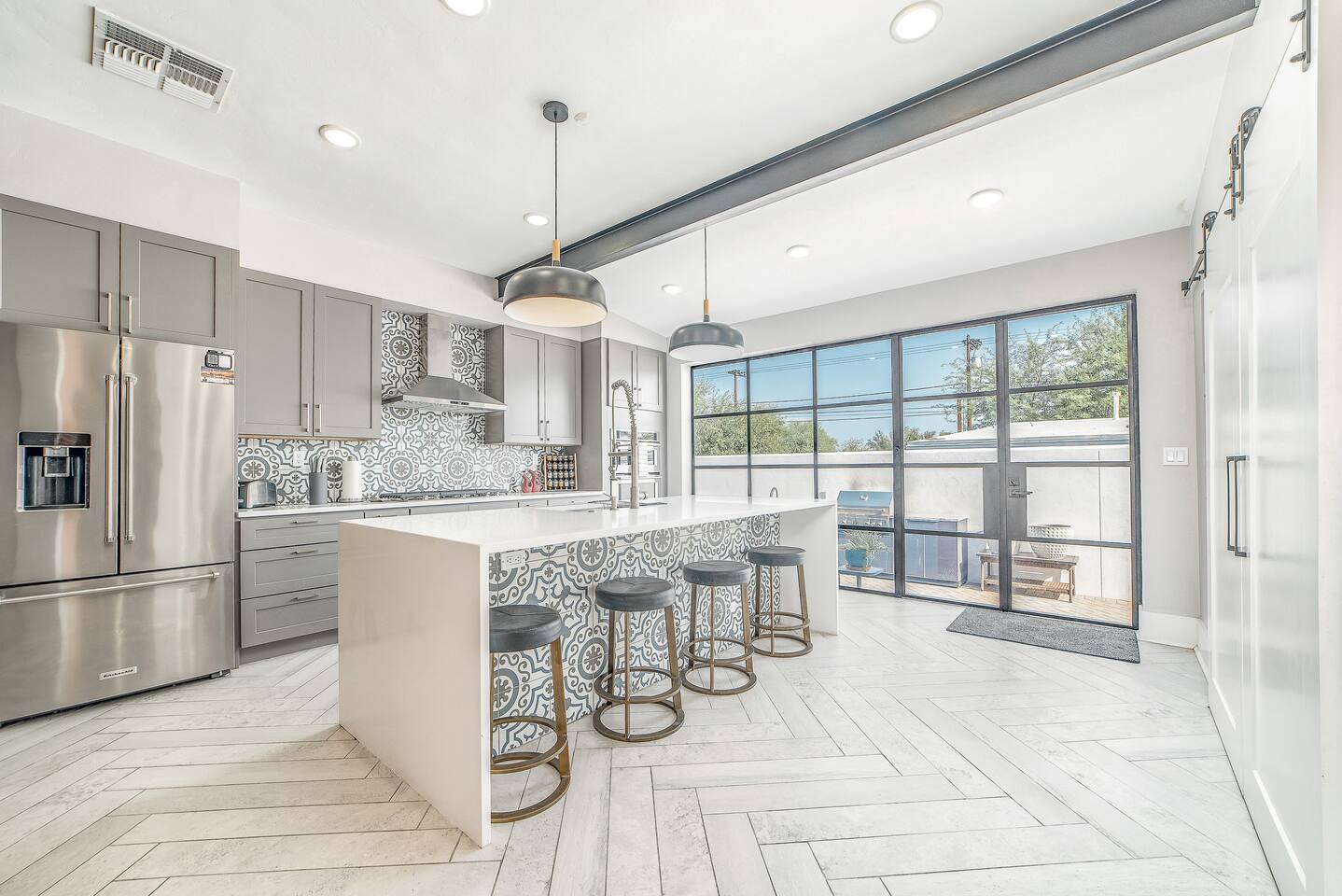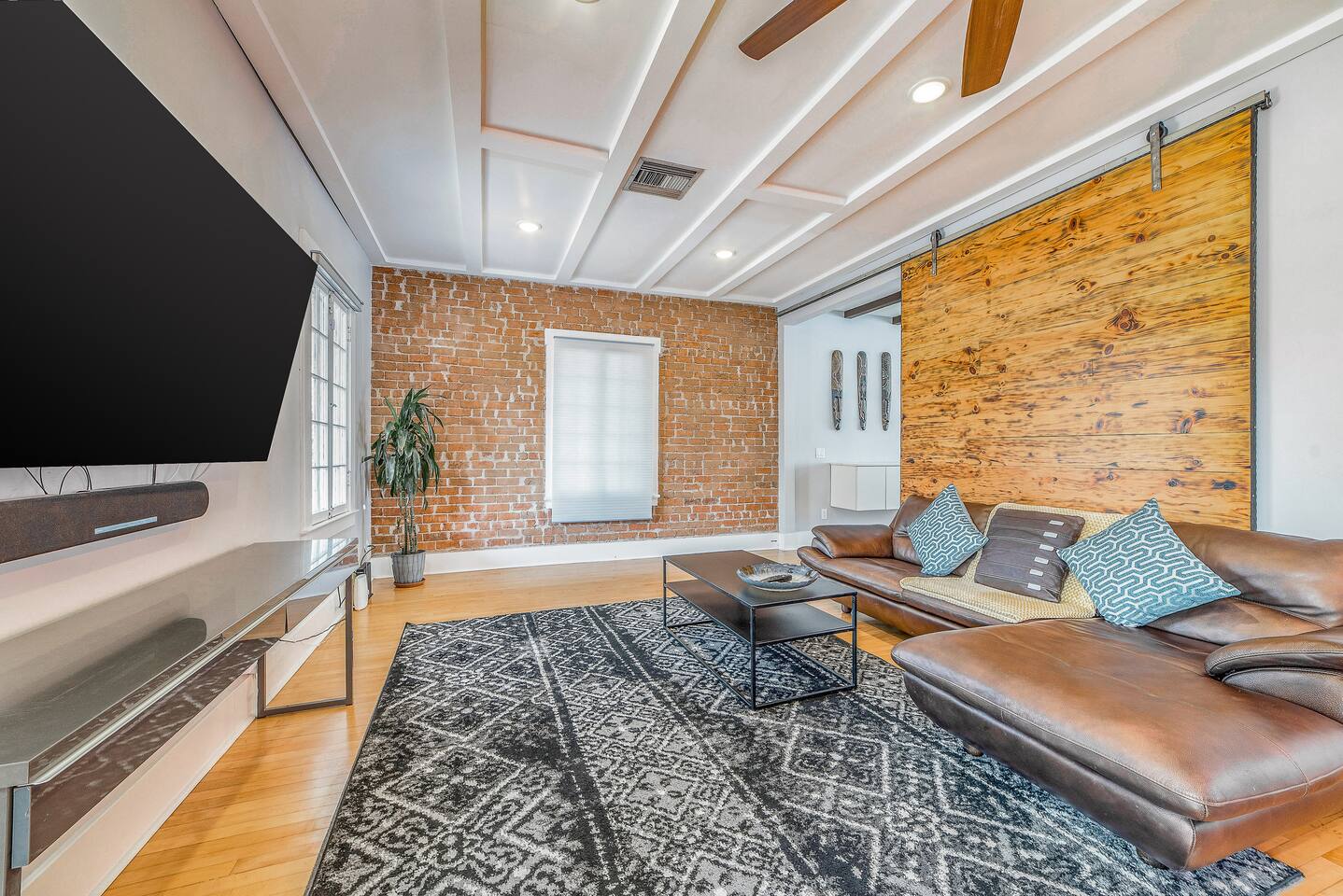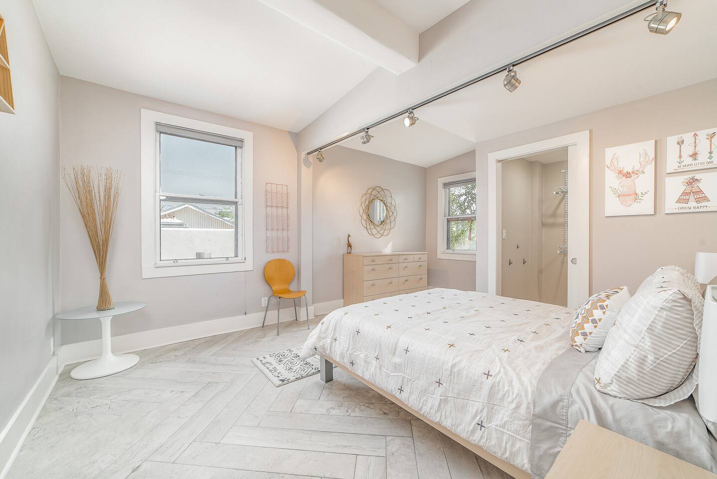 Newly Renovated Modern Interior Design Walk to the University Maple Wood and Tile Floors Luxury Bedding Kitchen Necessities BBQ 65' LG OLED.