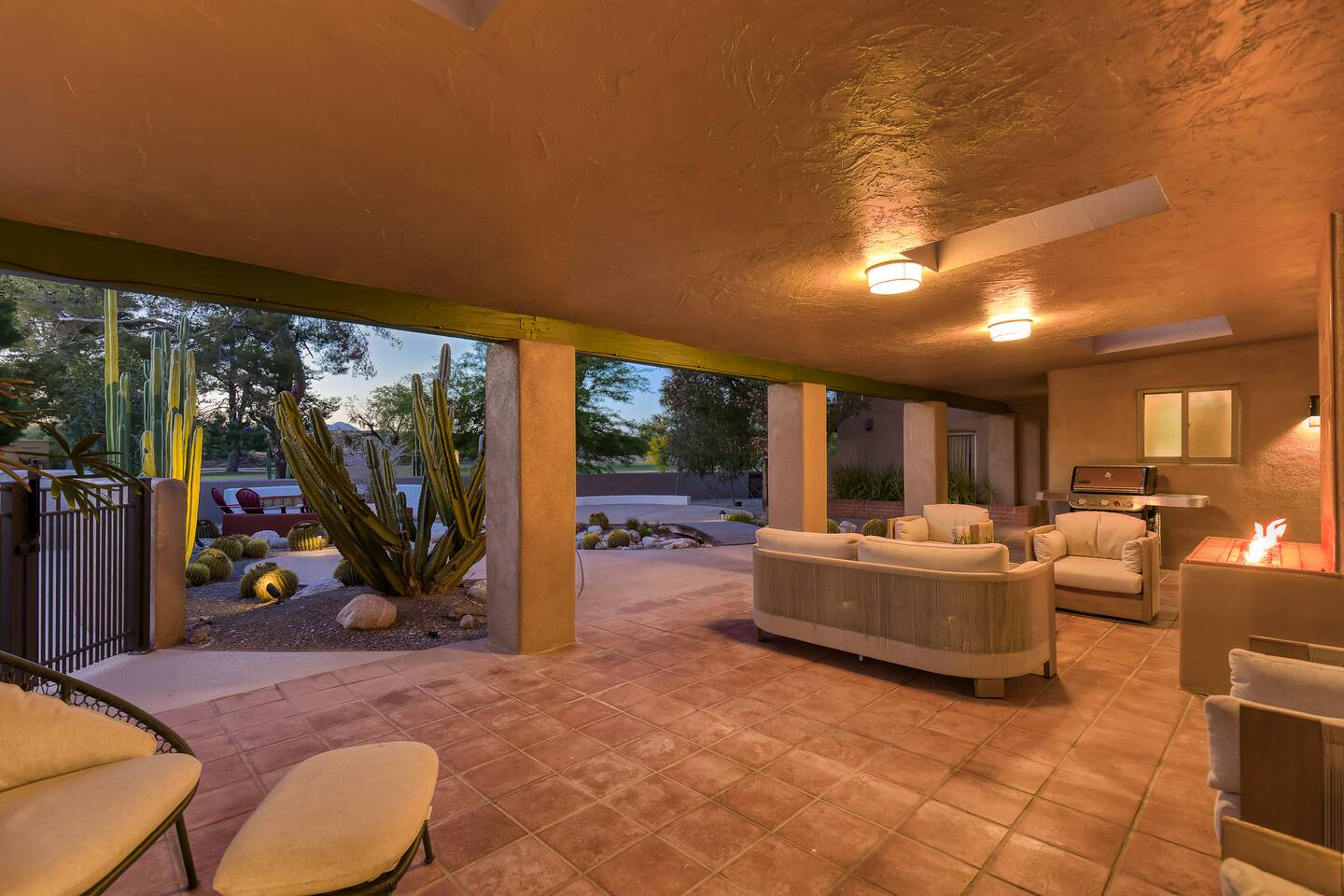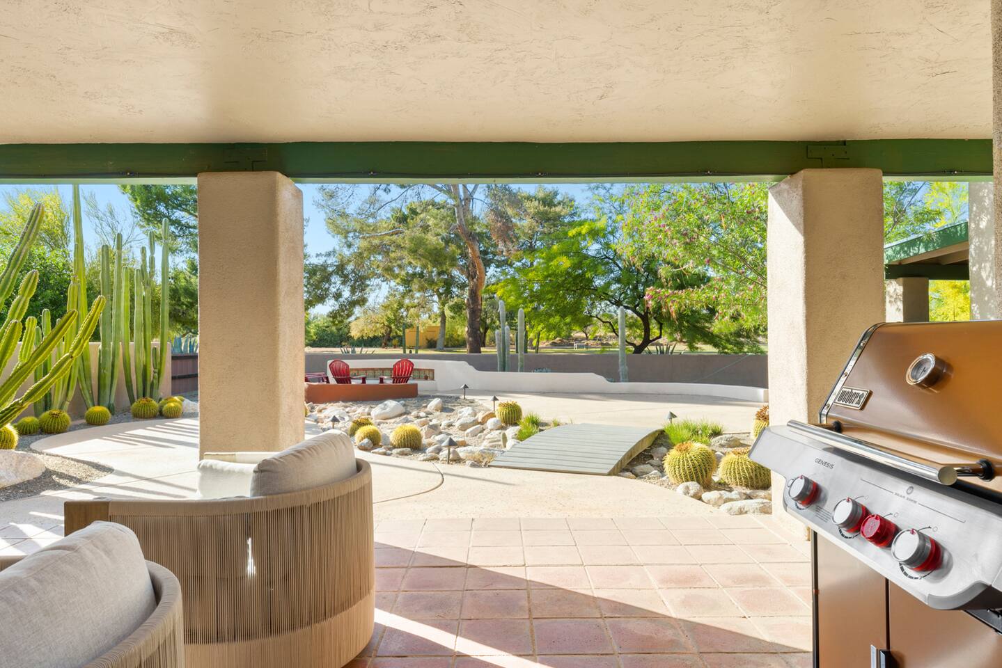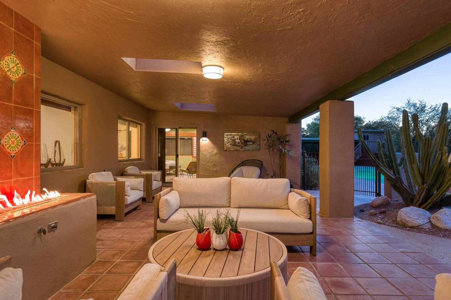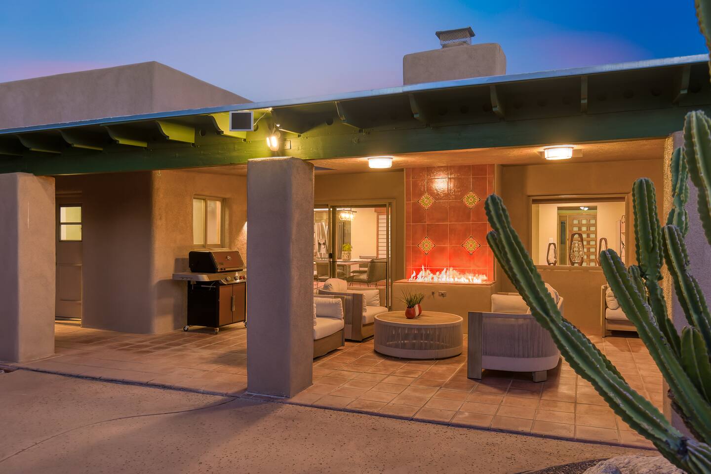 Luxurious Golf Course Retreat with Casita in Oro Valley Welcome to your perfect getaway in beautiful Oro Valley, Tucson, Arizona! Nestled within a prestigious luxury golf course community, this stunning 5-bedroom, 3.5-bath home offers the ultimate in comfort, elegance, and relaxation. Main House Features: Spacious and Elegant: The main house boasts a meticulously designed interior with high-end finishes, spacious layout, and large windows that flood the space with natural light. Gourmet Kitchen: Fully equipped with top-of-the-line appliances, beautiful countertops, and cooking amenities, perfect for preparing and enjoying meals. Luxurious Bedrooms: Unwind in the lavish master suite featuring a king-sized bed, a cozy sitting area, and a walk-in closet. The master bathroom is a unique highlight with an open-concept shower room, providing a spa-like experience. Additional bedrooms are equally well-appointed, ensuring a restful night's sleep for all guests. Elegant Living Spaces: Relax in the open-concept living and dining areas, complete with a cozy fireplace and stylish furnishings. Ideal for entertaining or unwinding after a day on the golf course or exploring town. Office Space: The home includes a dedicated office area with a desk, offering the most stunning view to inspire productivity and creativity. Need to take a client? The office is perfect with plenty of area to present. Outdoor Oasis: Step outside to your private patio and enjoy breathtaking views of the lush golf course. The backyard features two firepits, perfect for evening gatherings and enjoying the Arizona night sky. The outdoor space is perfect for al fresco dining, grilling, lounging, and soaking up the Arizona sunshine. Casita Features: Private and Cozy: The guest house (casita) offers a secluded retreat with its own entrance, providing additional privacy and comfort for your guests. Fully Equipped: Includes a comfortable living area, a well-appointed kitchenette, a queen-sized bed, and a private bathroom. Pool Access: The casita features a sliding glass door that opens directly to the pool, perfect for a refreshing dip or lounging by the water. Ideal for Larger Groups: Perfect for friends or family members who want their own space while staying close by, making it an excellent choice for larger groups needing privacy. Additional Amenities: Resort-Style Amenities: Take advantage of the amenities, including a sparkling swimming pool, gas grill, and lounge areas. Convenient Location: Situated in the heart of Oro Valley, you're just a short drive away from local attractions, shopping, dining, and outdoor recreational activities. Whether you're looking for a relaxing retreat or an action-packed getaway, this luxurious property in Oro Valley offers the best of both worlds. Book your stay today and experience the ultimate in luxury and comfort!
