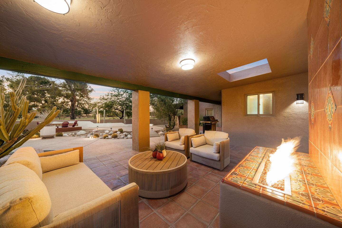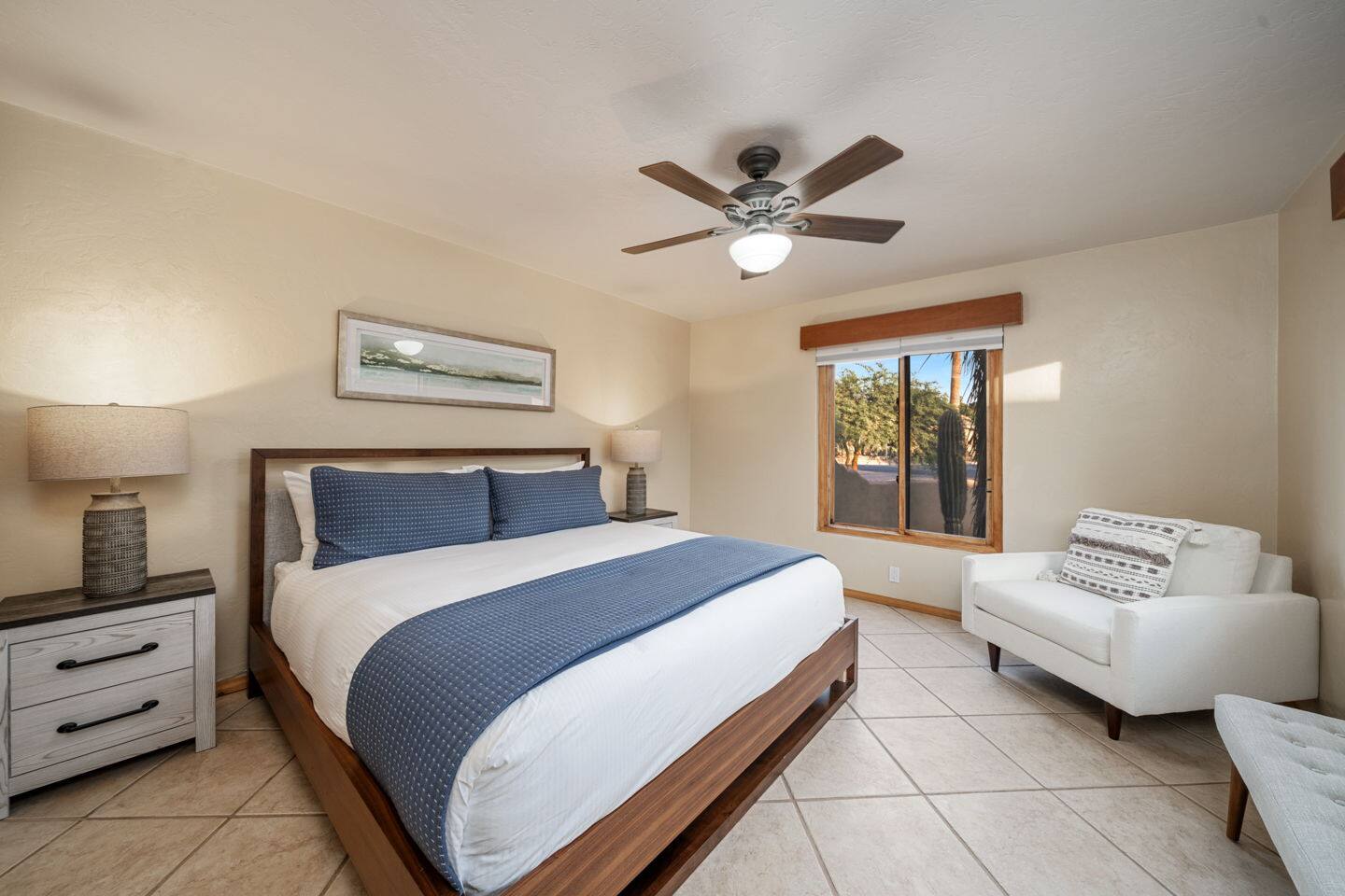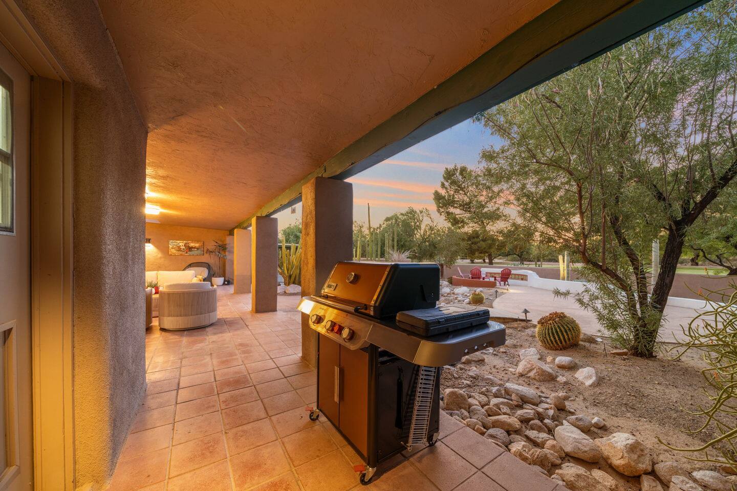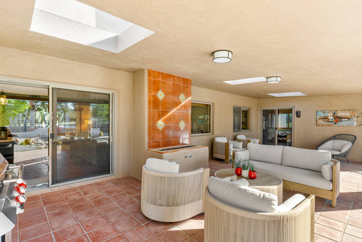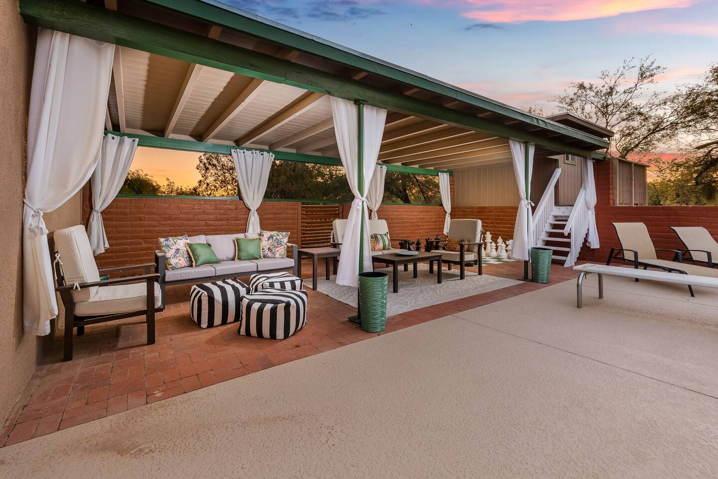 Luxurious Golf Course Retreat with Casita in Oro Valley Welcome to your perfect getaway in beautiful Oro Valley, Tucson, Arizona! Nestled within a prestigious luxury golf course community, this stunning 5-bedroom, 3.5-bath home offers the ultimate in comfort, elegance, and relaxation. Main House Features: Spacious and Elegant: The main house boasts a meticulously designed interior with high-end finishes, spacious layout, and large windows that flood the space with natural light. Gourmet Kitchen: Fully equipped with top-of-the-line appliances, beautiful countertops, and cooking amenities, perfect for preparing and enjoying meals. Luxurious Bedrooms: Unwind in the lavish master suite featuring a king-sized bed, a cozy sitting area, and a walk-in closet. The master bathroom is a unique highlight with an open-concept shower room, providing a spa-like experience. Additional bedrooms are equally well-appointed, ensuring a restful night's sleep for all guests. Elegant Living Spaces: Relax in the open-concept living and dining areas, complete with a cozy fireplace and stylish furnishings. Ideal for entertaining or unwinding after a day on the golf course or exploring town. Office Space: The home includes a dedicated office area with a desk, offering the most stunning view to inspire productivity and creativity. Need to take a client? The office is perfect with plenty of area to present. Outdoor Oasis: Step outside to your private patio and enjoy breathtaking views of the lush golf course. The backyard features two firepits, perfect for evening gatherings and enjoying the Arizona night sky. The outdoor space is perfect for al fresco dining, grilling, lounging, and soaking up the Arizona sunshine. Casita Features: Private and Cozy: The guest house (casita) offers a secluded retreat with its own entrance, providing additional privacy and comfort for your guests. Fully Equipped: Includes a comfortable living area, a well-appointed kitchenette, a queen-sized bed, and a private bathroom. Pool Access: The casita features a sliding glass door that opens directly to the pool, perfect for a refreshing dip or lounging by the water. Ideal for Larger Groups: Perfect for friends or family members who want their own space while staying close by, making it an excellent choice for larger groups needing privacy. Additional Amenities: Resort-Style Amenities: Take advantage of the amenities, including a sparkling swimming pool, gas grill, and lounge areas. Convenient Location: Situated in the heart of Oro Valley, you're just a short drive away from local attractions, shopping, dining, and outdoor recreational activities. Whether you're looking for a relaxing retreat or an action-packed getaway, this luxurious property in Oro Valley offers the best of both worlds. Book your stay today and experience the ultimate in luxury and comfort!