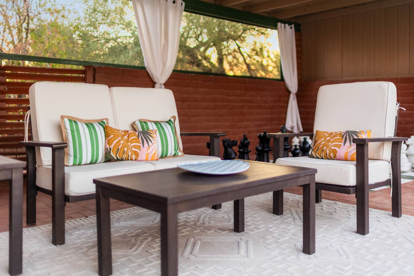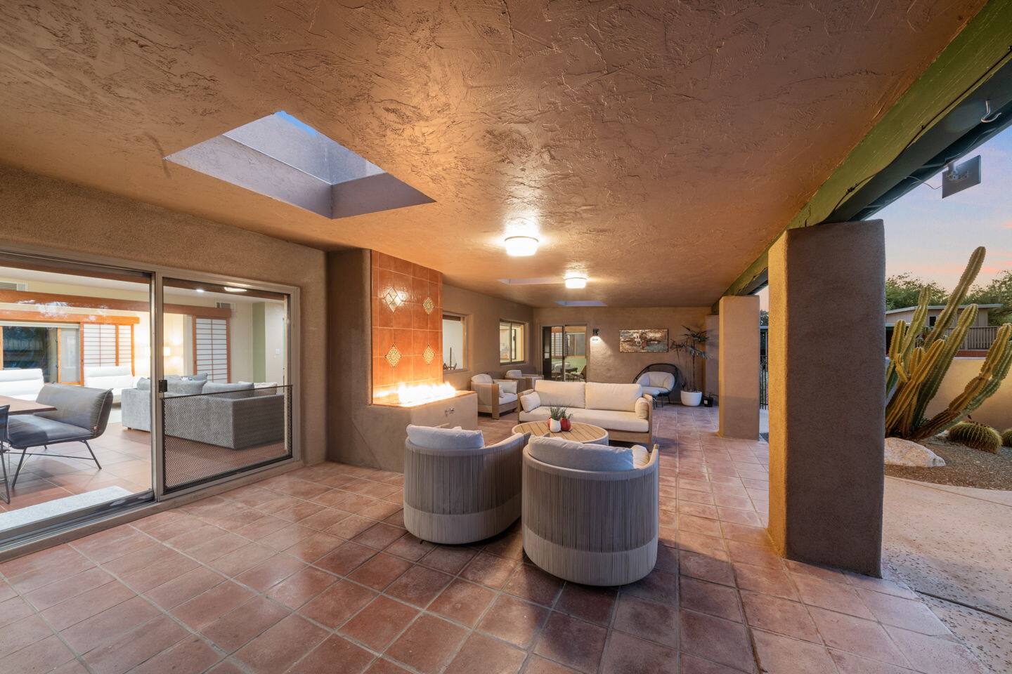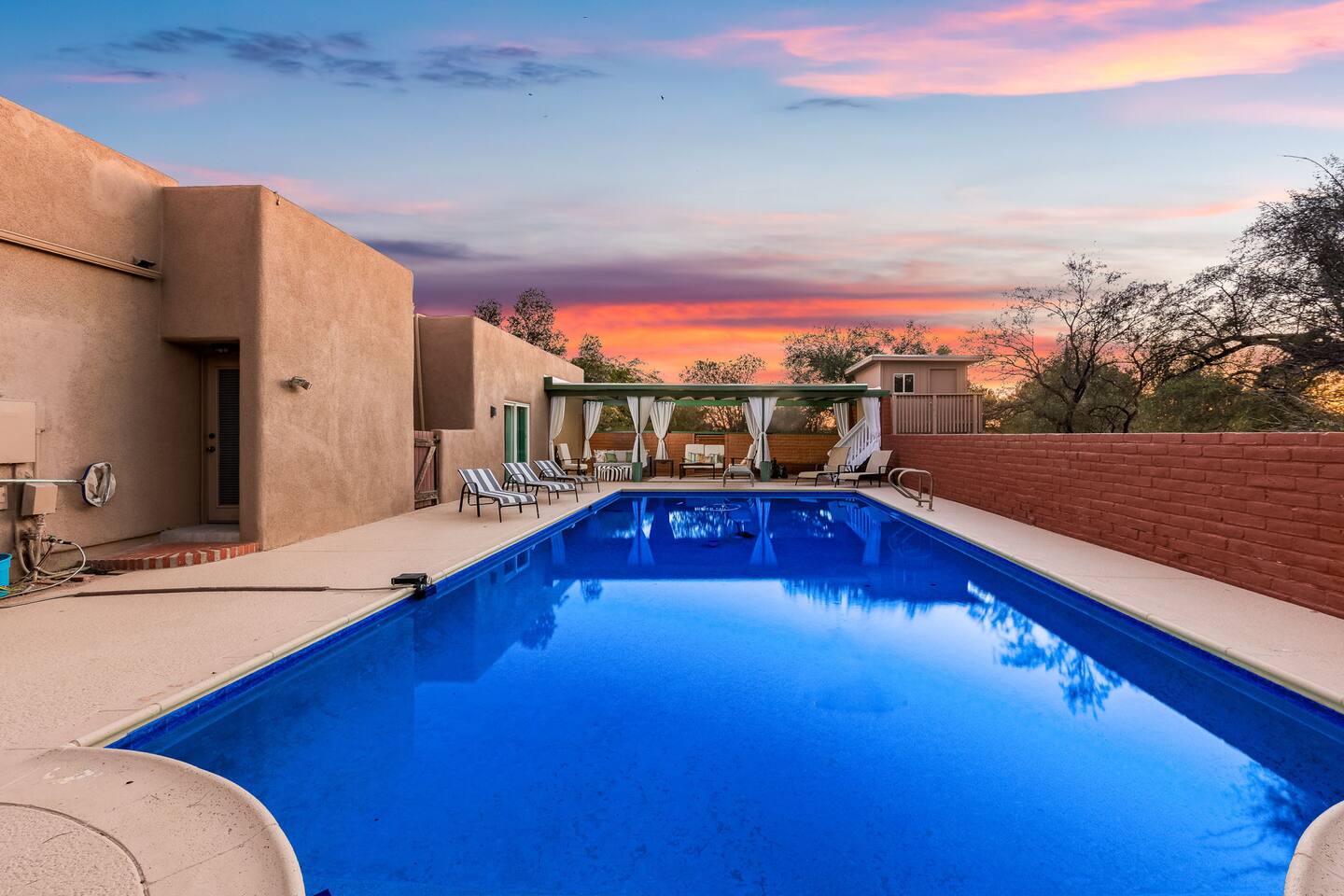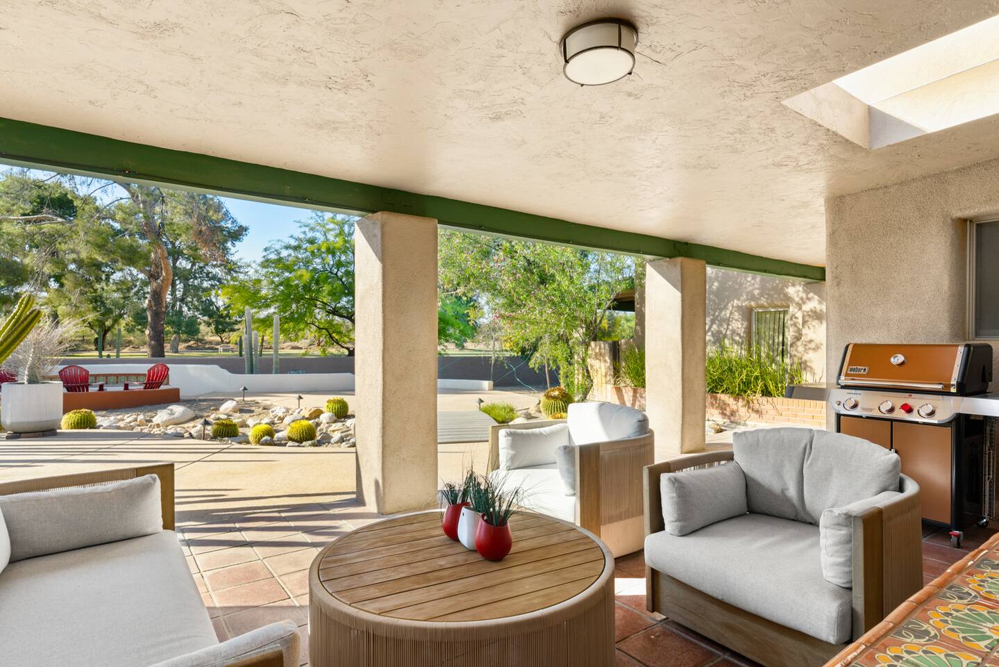 Luxurious Golf Course Retreat with Casita in Oro Valley Welcome to your perfect getaway in beautiful Oro Valley, Tucson, Arizona! Nestled within a prestigious luxury golf course community, this stunning 5-bedroom, 3.5-bath home offers the ultimate in comfort, elegance, and relaxation. Main House Features: Spacious and Elegant: The main house boasts a meticulously designed interior with high-end finishes, spacious layout, and large windows that flood the space with natural light. Gourmet Kitchen: Fully equipped with top-of-the-line appliances, beautiful countertops, and cooking amenities, perfect for preparing and enjoying meals. Luxurious Bedrooms: Unwind in the lavish master suite featuring a king-sized bed, a cozy sitting area, and a walk-in closet. The master bathroom is a unique highlight with an open-concept shower room, providing a spa-like experience. Additional bedrooms are equally well-appointed, ensuring a restful night's sleep for all guests. Elegant Living Spaces: Relax in the open-concept living and dining areas, complete with a cozy fireplace and stylish furnishings. Ideal for entertaining or unwinding after a day on the golf course or exploring town. Office Space: The home includes a dedicated office area with a desk, offering the most stunning view to inspire productivity and creativity. Need to take a client? The office is perfect with plenty of area to present. Outdoor Oasis: Step outside to your private patio and enjoy breathtaking views of the lush golf course. The backyard features two firepits, perfect for evening gatherings and enjoying the Arizona night sky. The outdoor space is perfect for al fresco dining, grilling, lounging, and soaking up the Arizona sunshine. Casita Features: Private and Cozy: The guest house (casita) offers a secluded retreat with its own entrance, providing additional privacy and comfort for your guests. Fully Equipped: Includes a comfortable living area, a well-appointed kitchenette, a queen-sized bed, and a private bathroom. Pool Access: The casita features a sliding glass door that opens directly to the pool, perfect for a refreshing dip or lounging by the water. Ideal for Larger Groups: Perfect for friends or family members who want their own space while staying close by, making it an excellent choice for larger groups needing privacy. Additional Amenities: Resort-Style Amenities: Take advantage of the amenities, including a sparkling swimming pool, gas grill, and lounge areas. Convenient Location: Situated in the heart of Oro Valley, you're just a short drive away from local attractions, shopping, dining, and outdoor recreational activities. Whether you're looking for a relaxing retreat or an action-packed getaway, this luxurious property in Oro Valley offers the best of both worlds. Book your stay today and experience the ultimate in luxury and comfort!