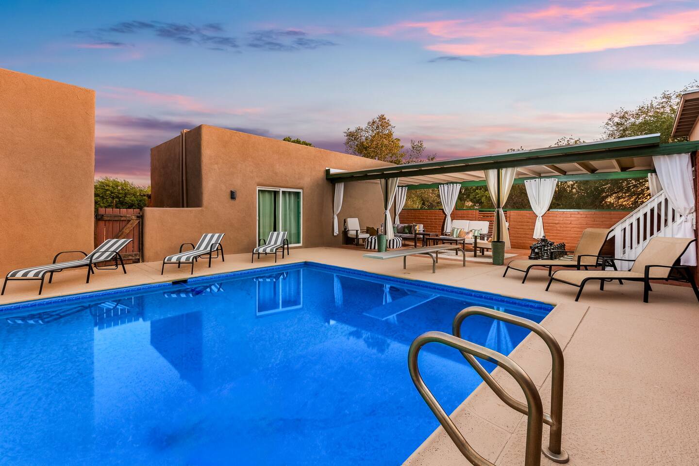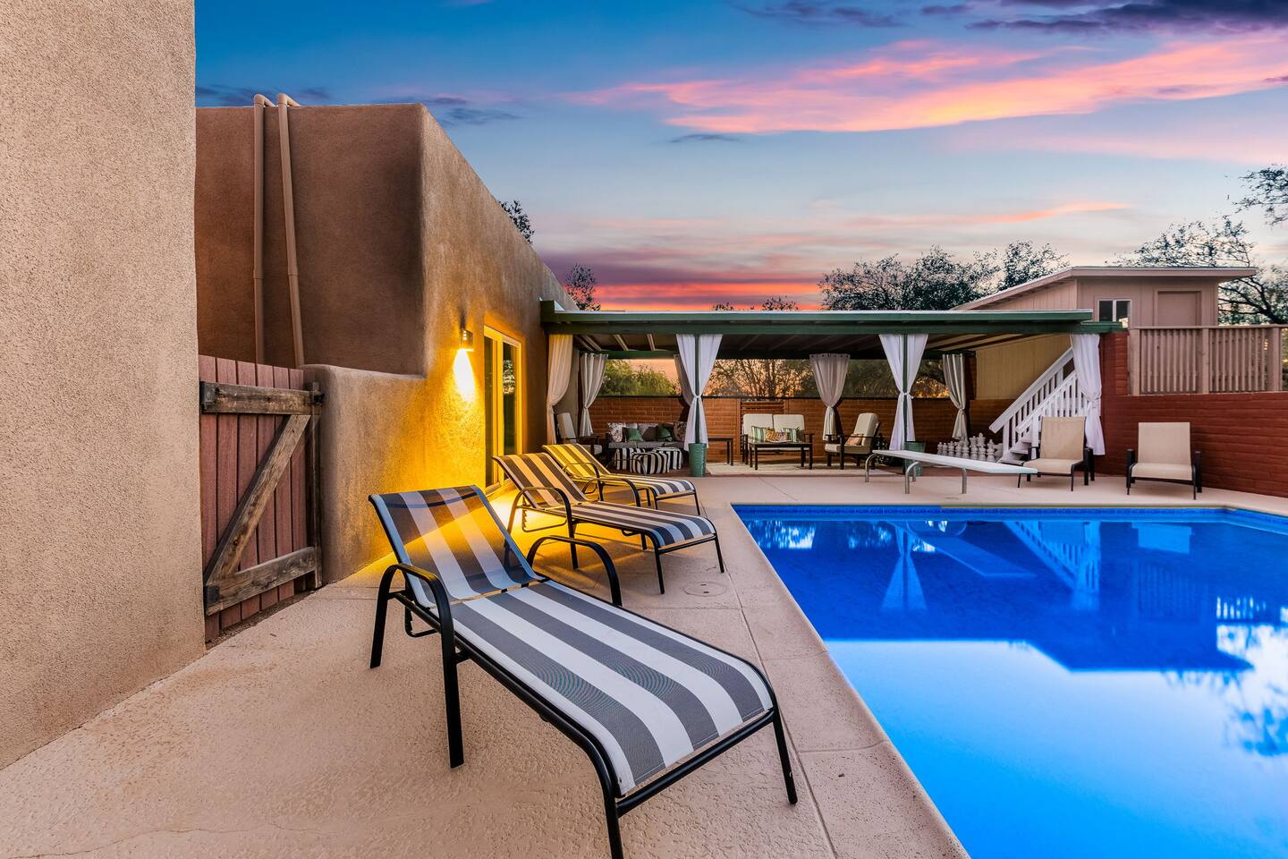 Enjoy easy access to golf, restaurants, shopping, hiking and biking from this centrally located home. Lounge by the pool and listen to the birds while gazing at the beautiful mountains. Nature lovers can live outside in the outdoor patio set, lounge area with grill, and 2 outdoor fire pits. Fully equip kitchen. Spacious guest house. Your own private worry free resort!