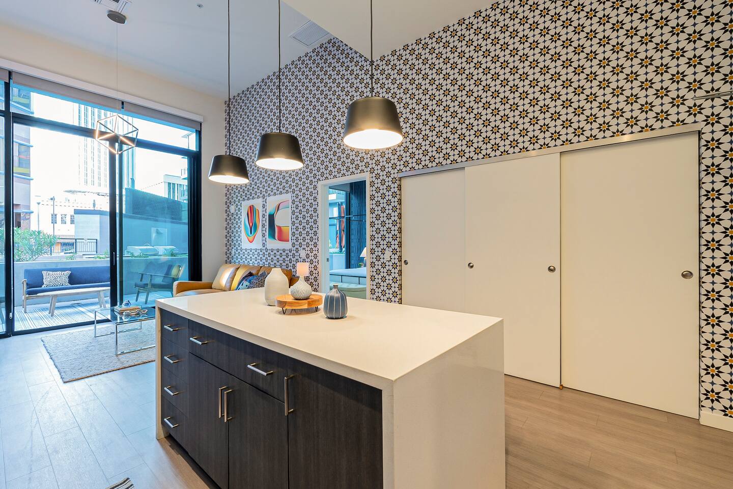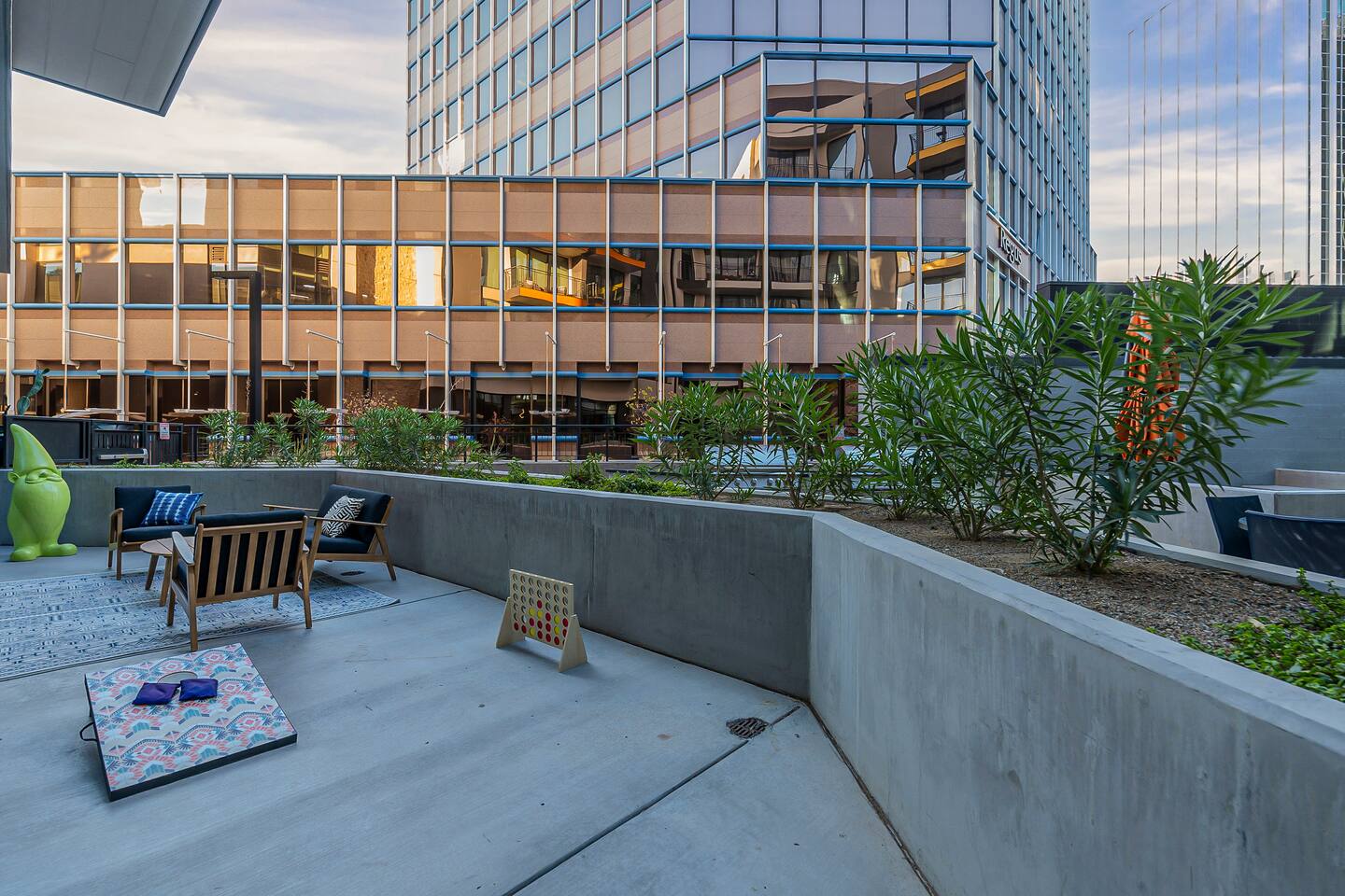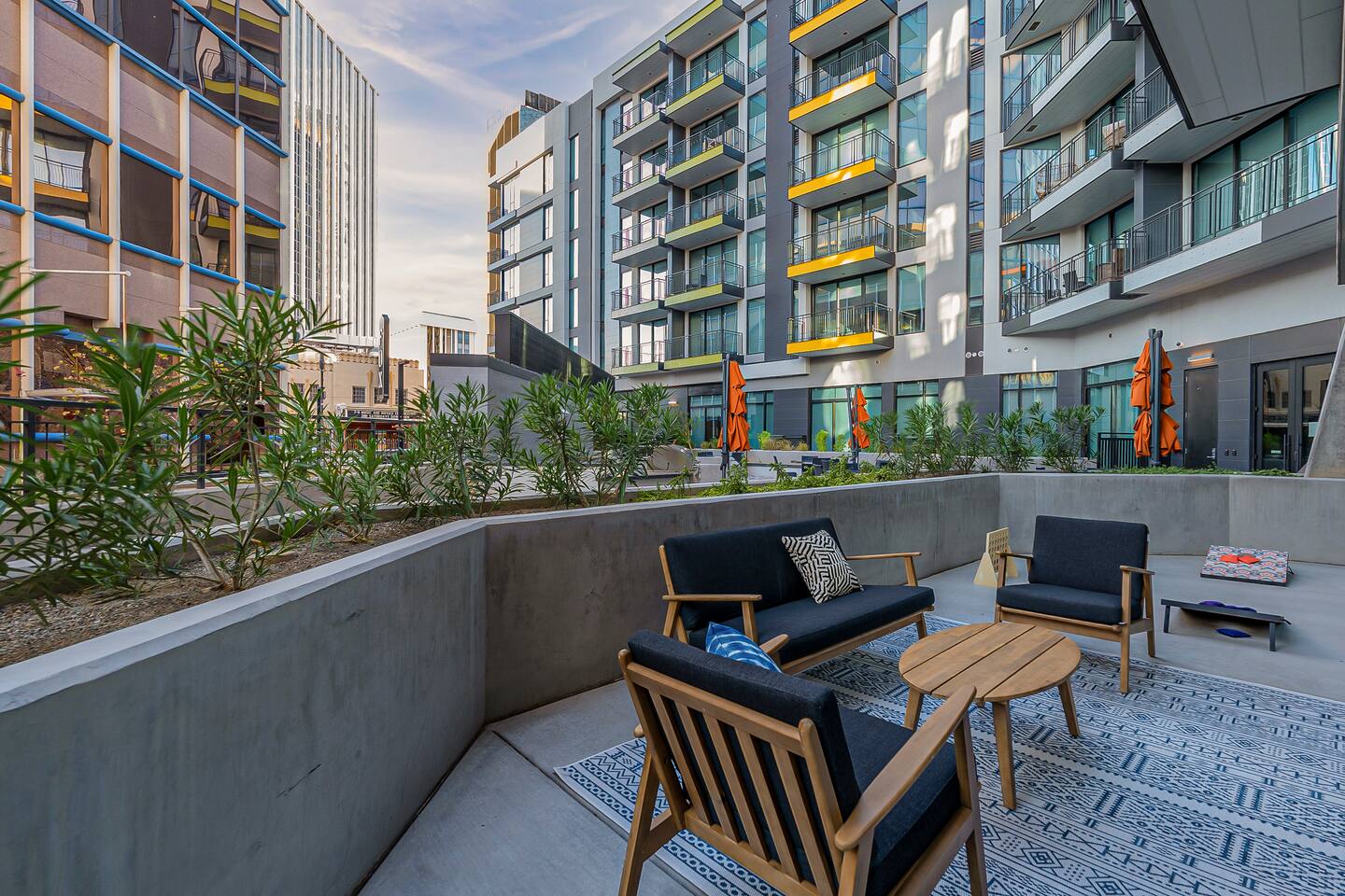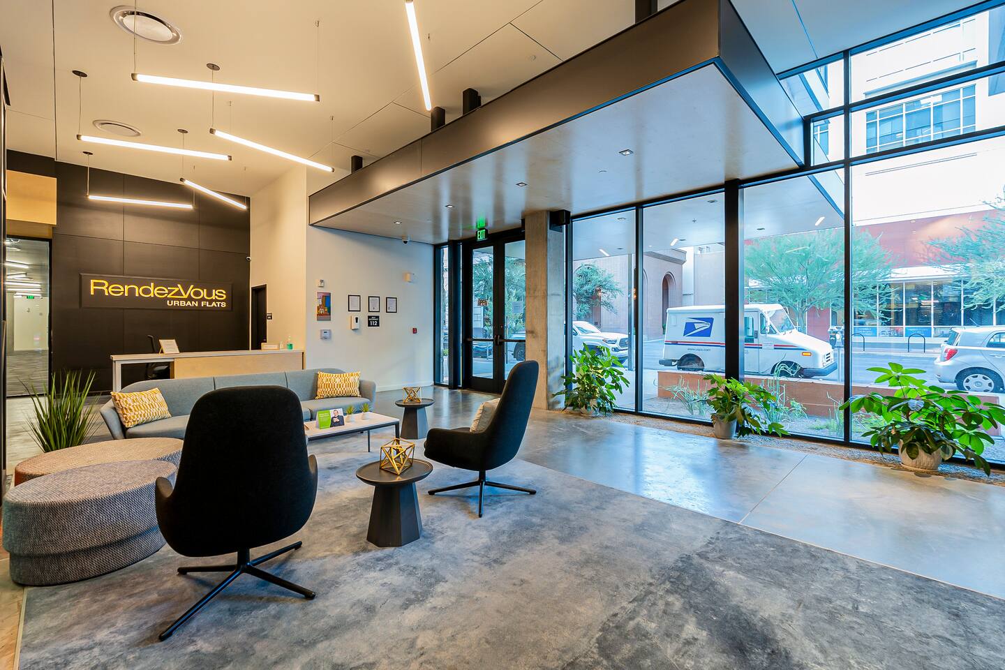 The ultimate urban-style living in the heart of downtown Tucson, RendezVous features a luxury floor plan with convenience at your fingertips. RendezVous Urban Flats is the ideal place to balance life, work, and play. Minutes from theaters, restaurants, nightlife, and everything else downtown has to offer. Our home feature quartz countertops with waterfall edge, elegant finishes, a full-sized washer and dryer, and oversized balconies with cityscape views. Work from home in our comfortable yet gorgeous co-working space, clubhouse, and conference room. Gather with your neighbors and friends at our outdoor entertainment plaza!