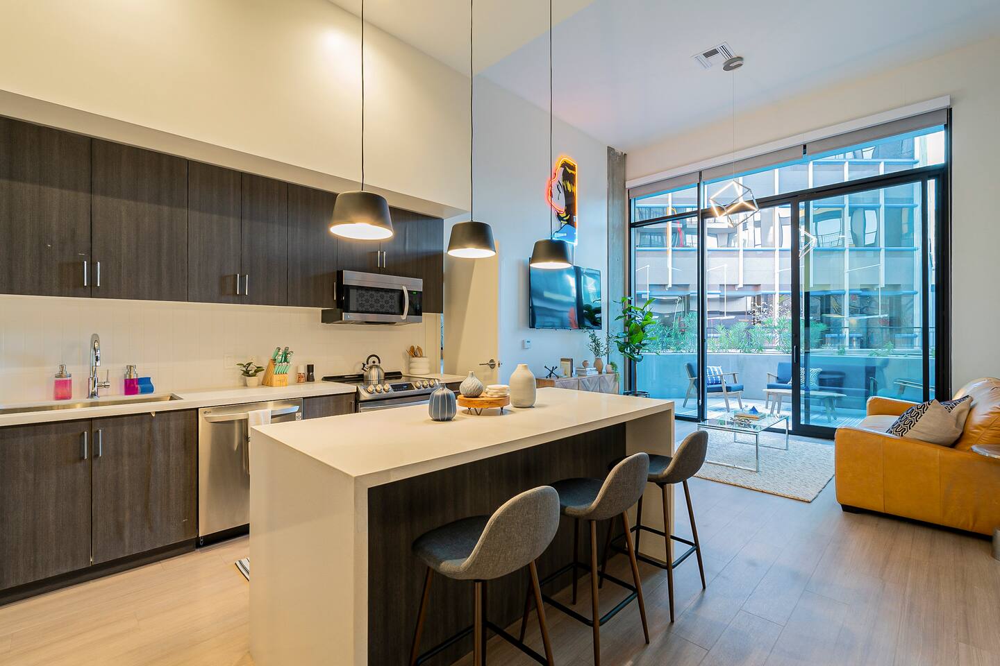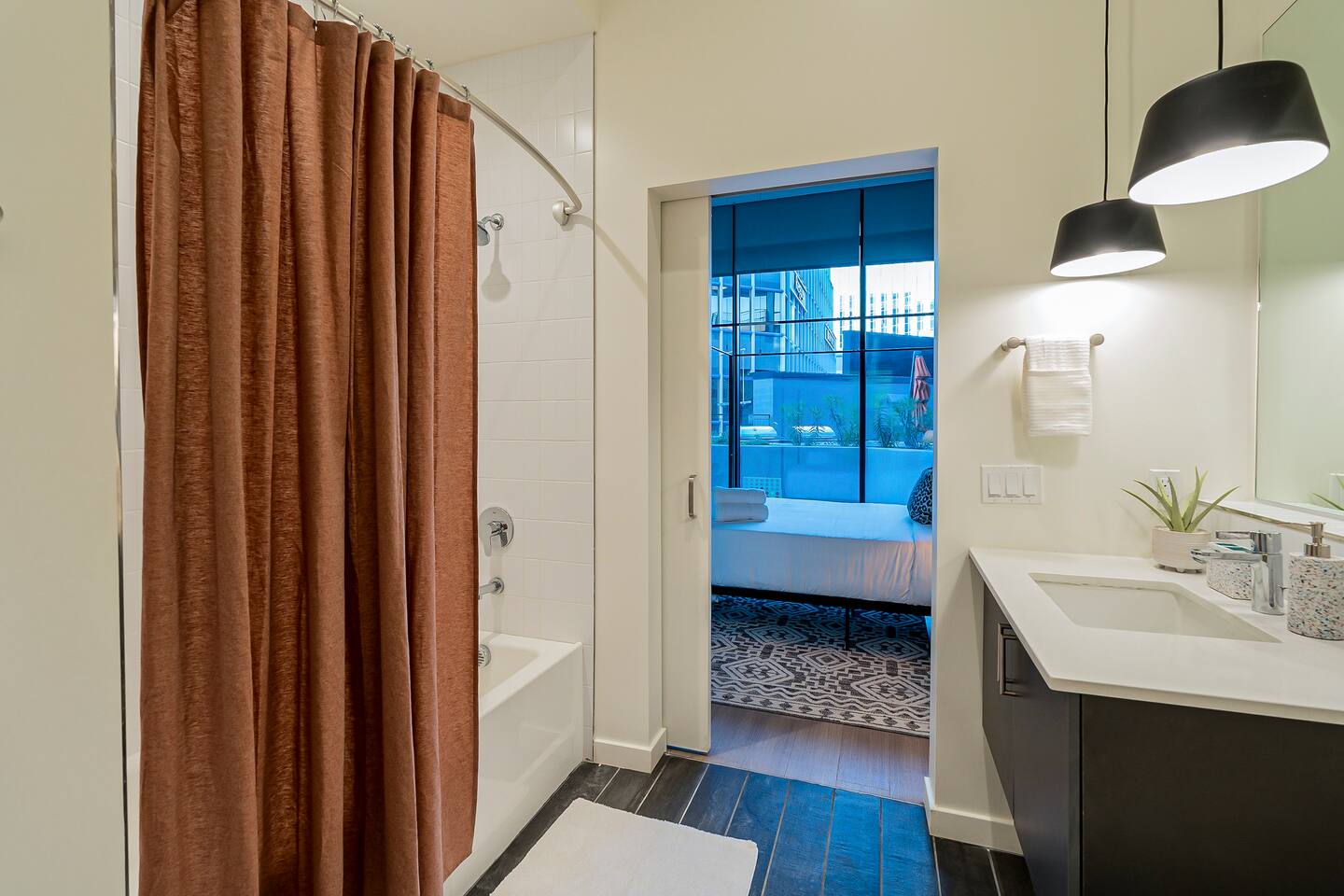 Travel in Style at Tucson's Newest and Most Desirable Location: Rendezvous' Urban Flats ◆ Minutes from theaters, restaurants, nightlife, and everything else downtown has to offer ◆ On the Tucson Streetcar path for easy access to many other destinations including the UofA ◆ Fully Stocked Kitchen ◆ Large Balcony with Amazing Views ◆ Washer / Dryer ◆ Self Check-In ◆ 1 Parking Garage Pass