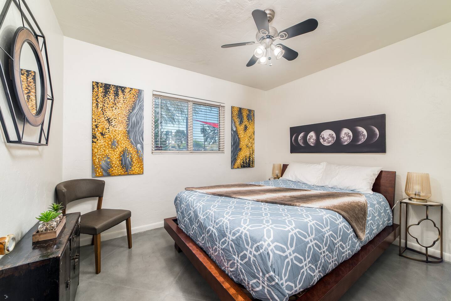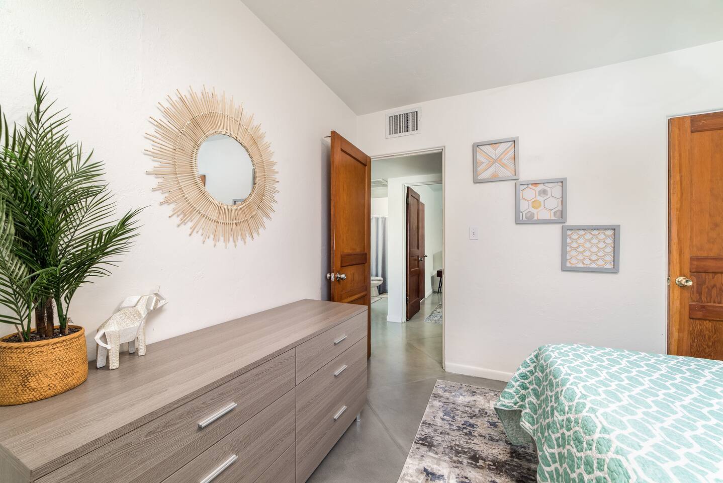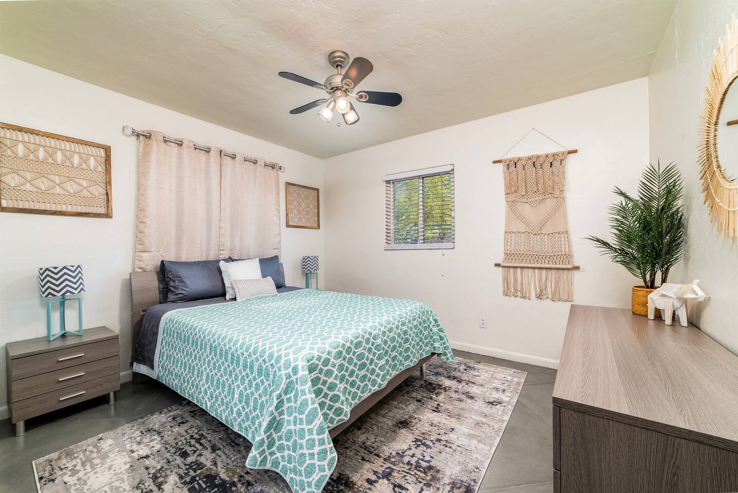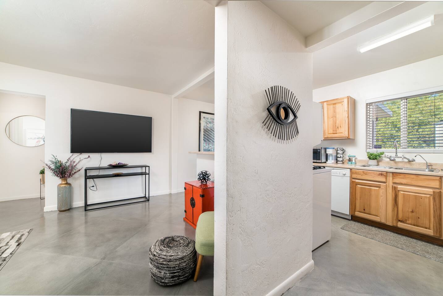 Modern Interior Design Close to the University and Shopping Concrete Floors Luxury Bedding Kitchen Necessities BBQ