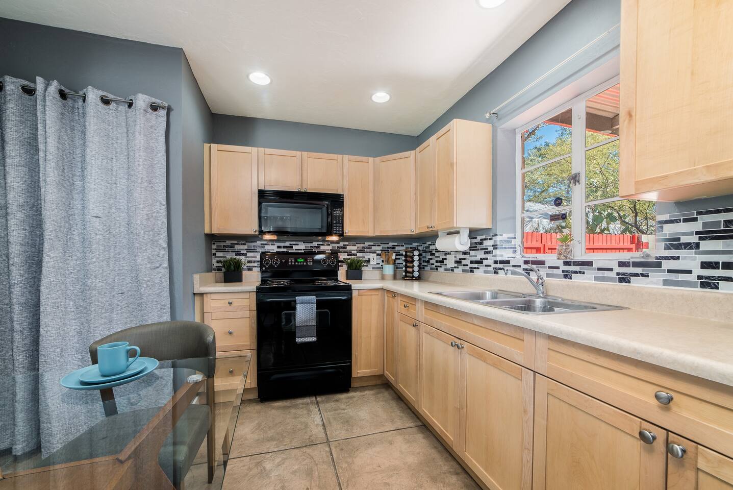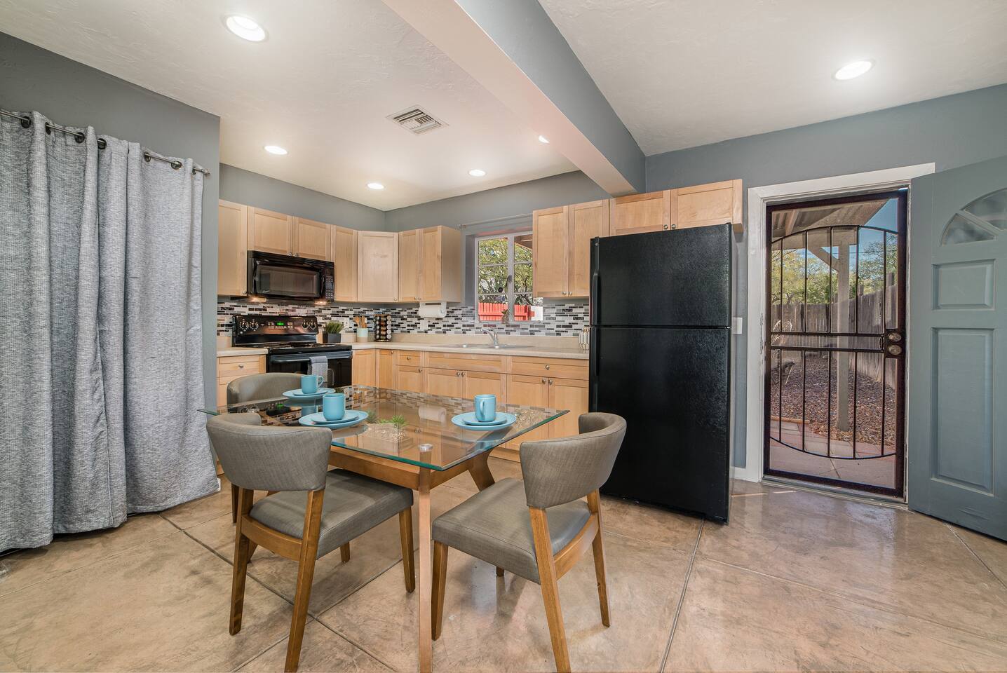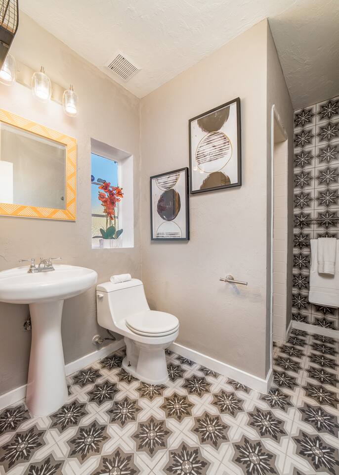 Please note that to turn the lights on and off, there is a dimmer switch behind the fridge, to turn them on bring the dimmer all the way up and vice versa to turn them off. EV Charger: Please note that the nearest electric vehicle charger is not located at the home, but is located nearby. While we understand the convenience of having an electric vehicle charger on site, we want to make it clear that it is not available at the property. The nearest EV charging station is at: Blink Charging Station, 2200 E Elm St, Tucson, AZ 85719, United States, (2 min) (0.6 miles) via N Forgeus Ave and E Elm St.