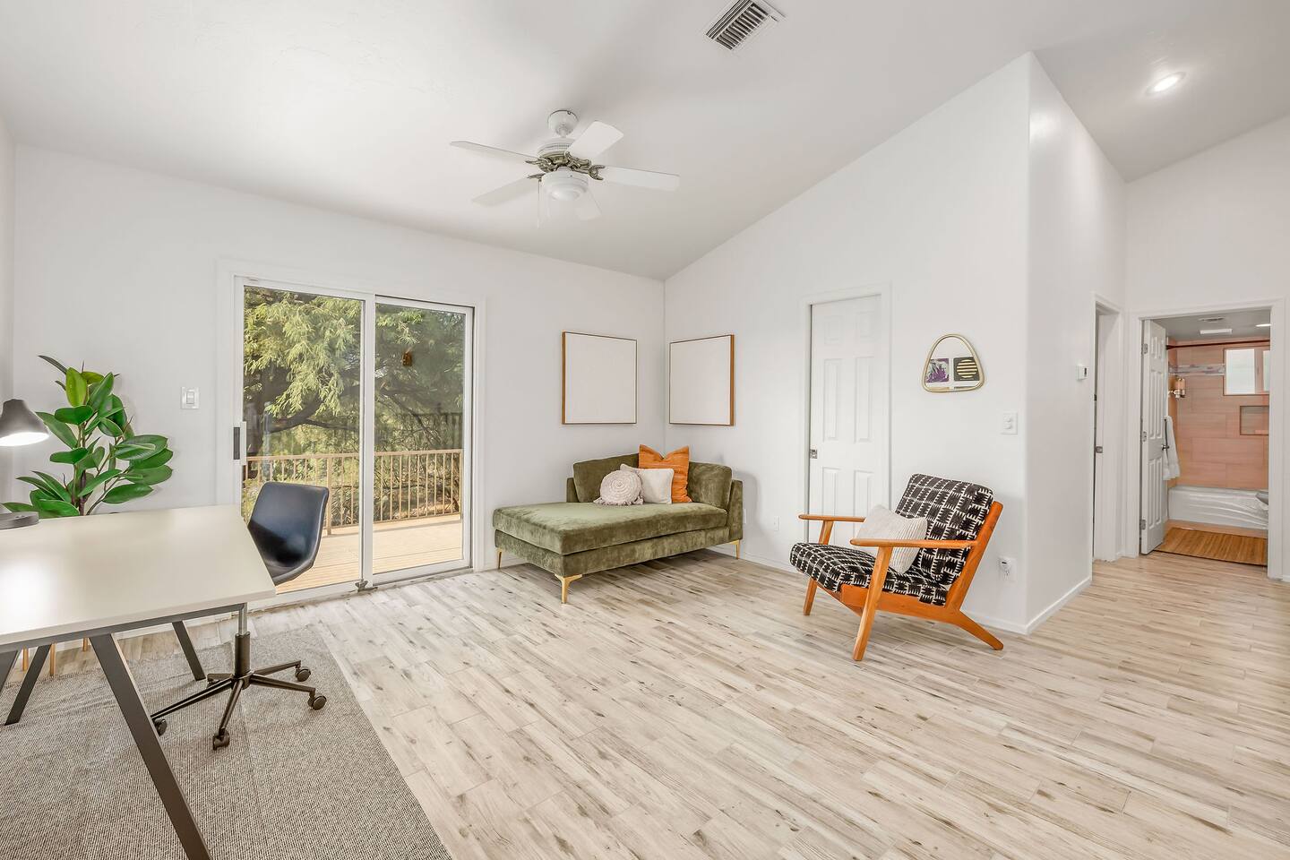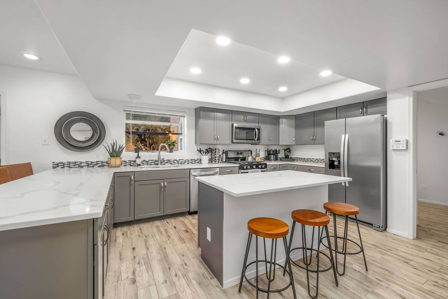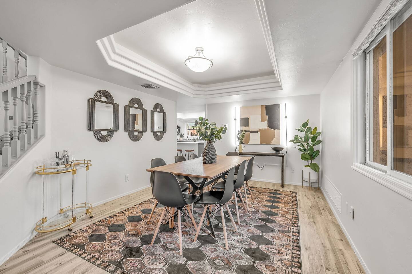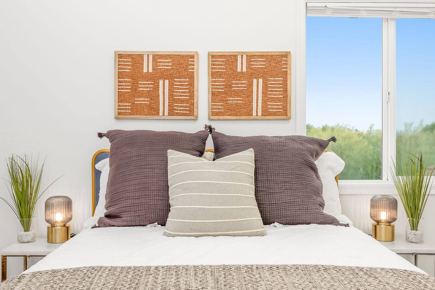 Stylish and fully-renovated home is a picture-perfect desert oasis. Spacious 5 bedroom/4 full baths, offers a breezy open concept living space, gorgeous oversized kitchen, game room with ping pong, and an additional office space upstairs. Beautifully landscaped backyard with an extended covered patio, balconies to take in the views, fire pit, and sparkling pool. Enjoy mountain views and privacy while only being minutes from premiere shopping, hiking, dining, and grocery stores.