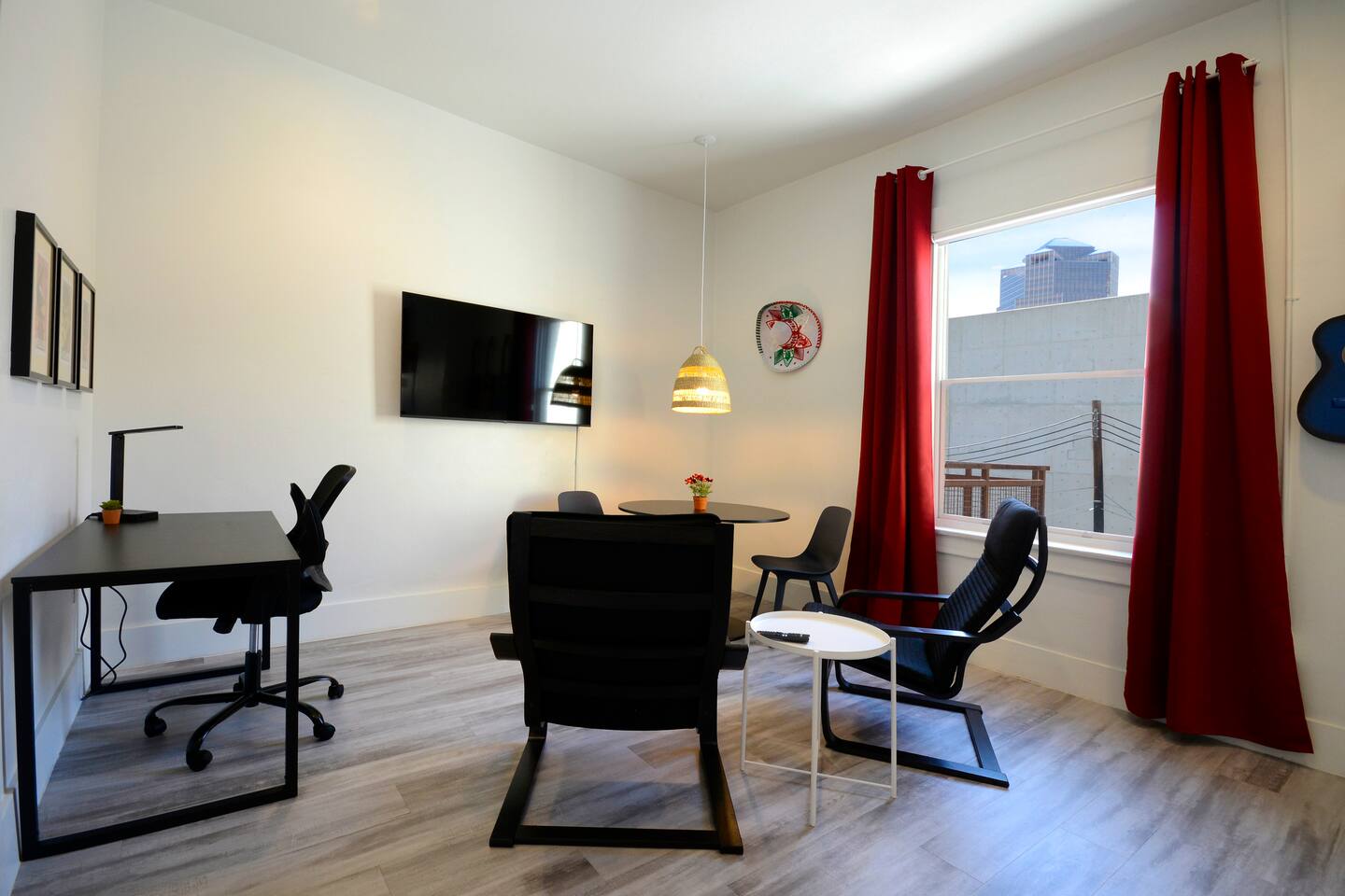 Top features: - Queen Memory Foam Bed - 55” Smart TV (no cable) - Fast Internet - Steps away from 20+ restaurants that are within easy walking distance - Multistory parking lot behind apt building (Pennington Street Garage) Music is in the iconic Arizona Hotel Building which was built in 1917 and added to the National Register of Historic Places on September 2003. It has all the amenities you will need to feel right at home and comfort you when you turn in for the night. The decor of this modern loft is inspired by hispanic musicians, Mariachis!. ** Reservation does NOT include parking nor streaming services ** TPT License #21550337