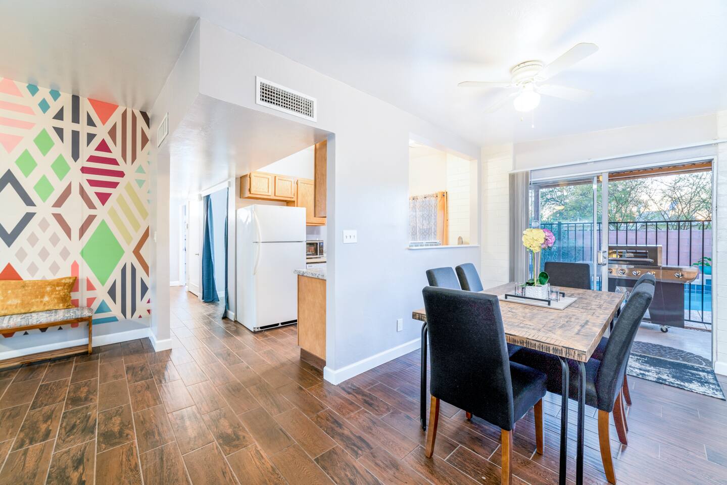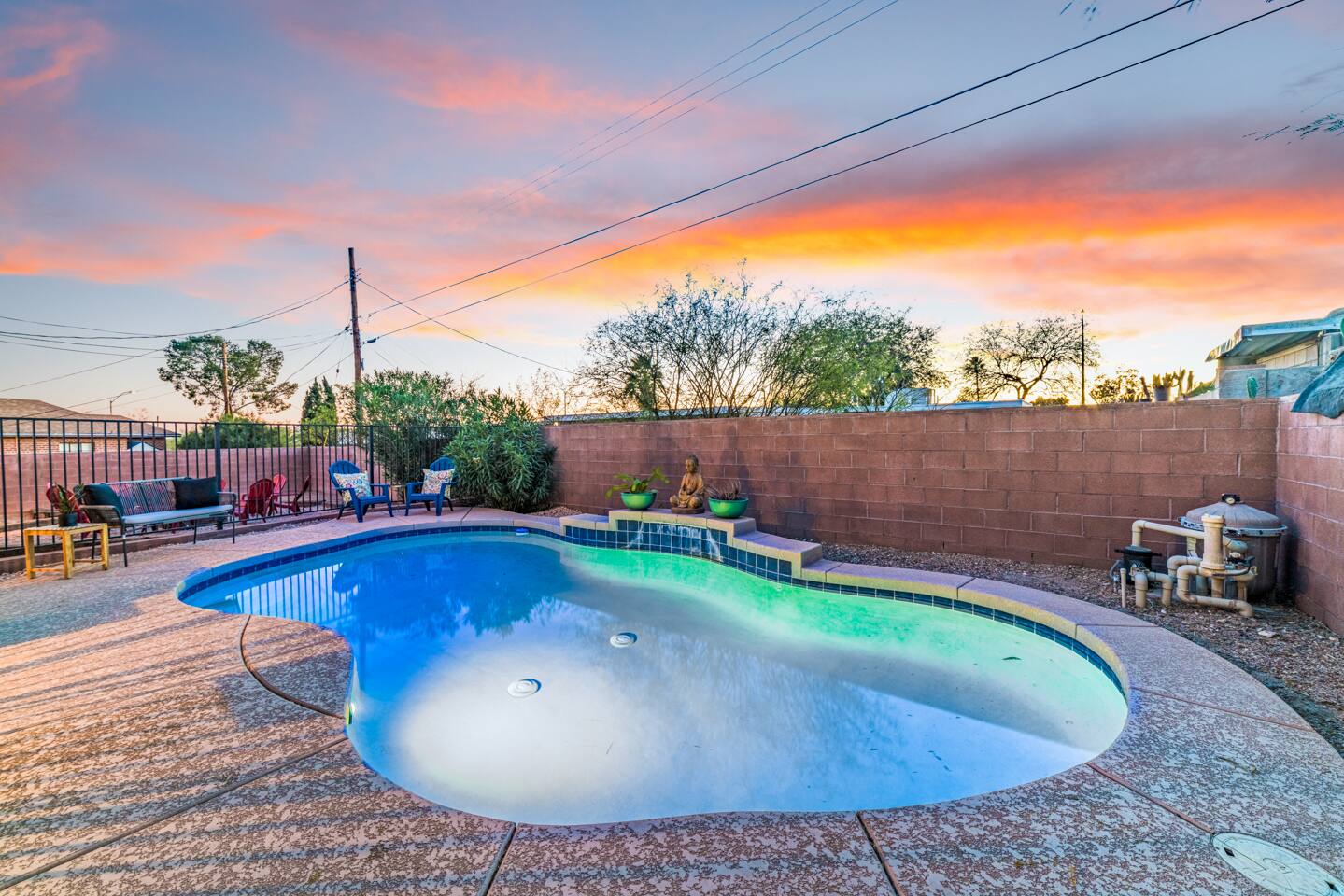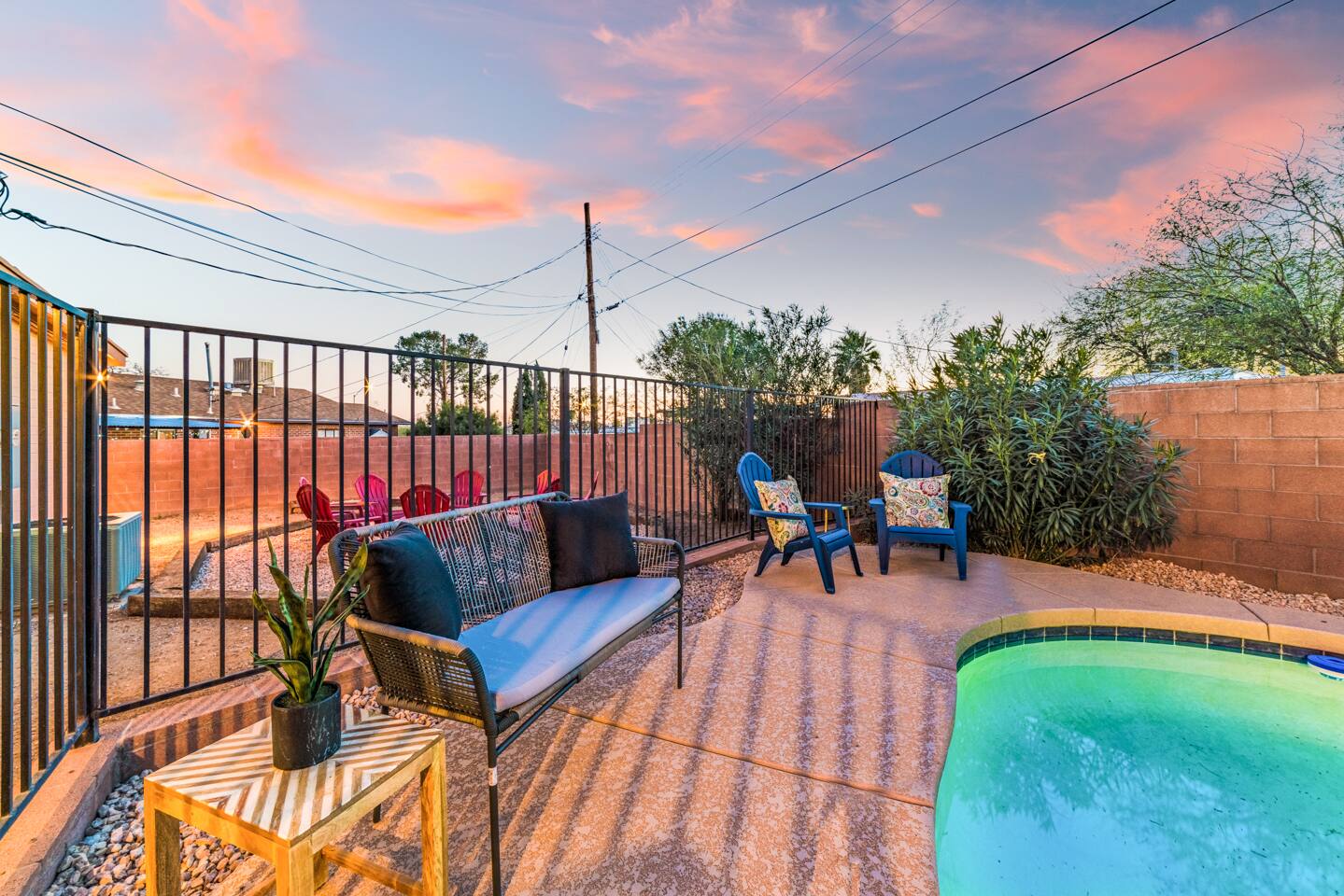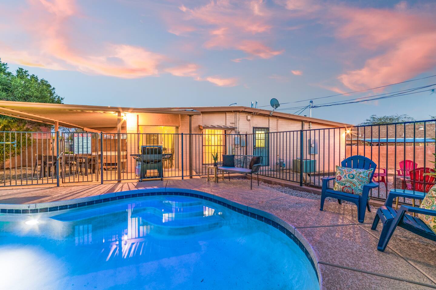 This stylish place to stay is perfect for group trips. Minutes away from the University of Arizona & Downtown Tucson! Located in the heart of Tucson. An amazing cheerful 4 bedroom houses with a backyard meant to entertain. Enjoy a gated sparkling and amazing swimming pool. Create memories in our wonderful home next to our fire pit lounge area.