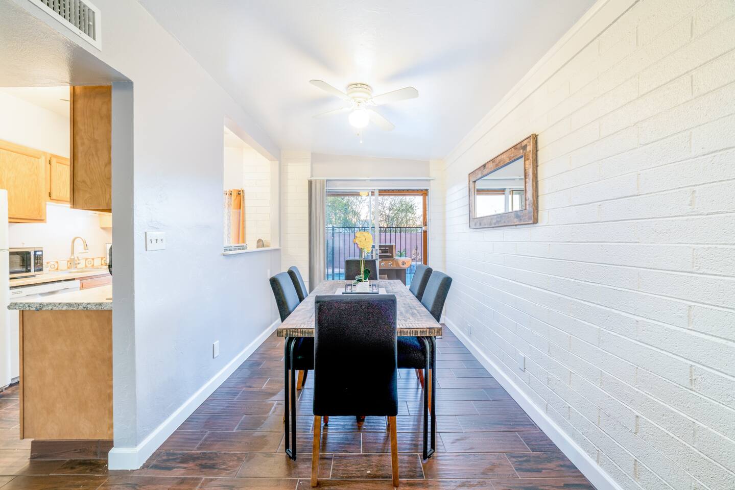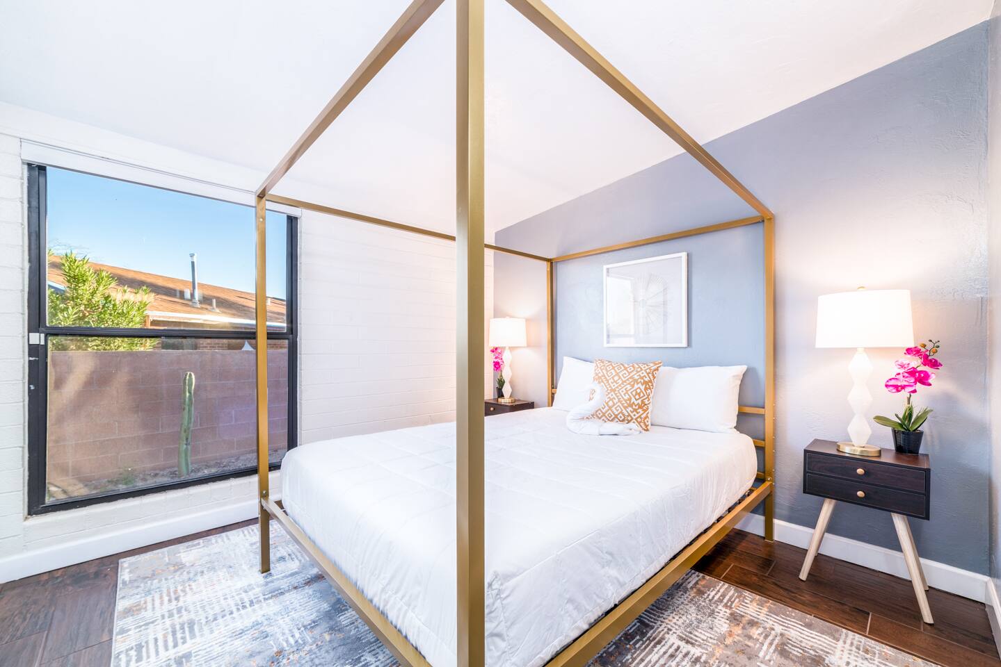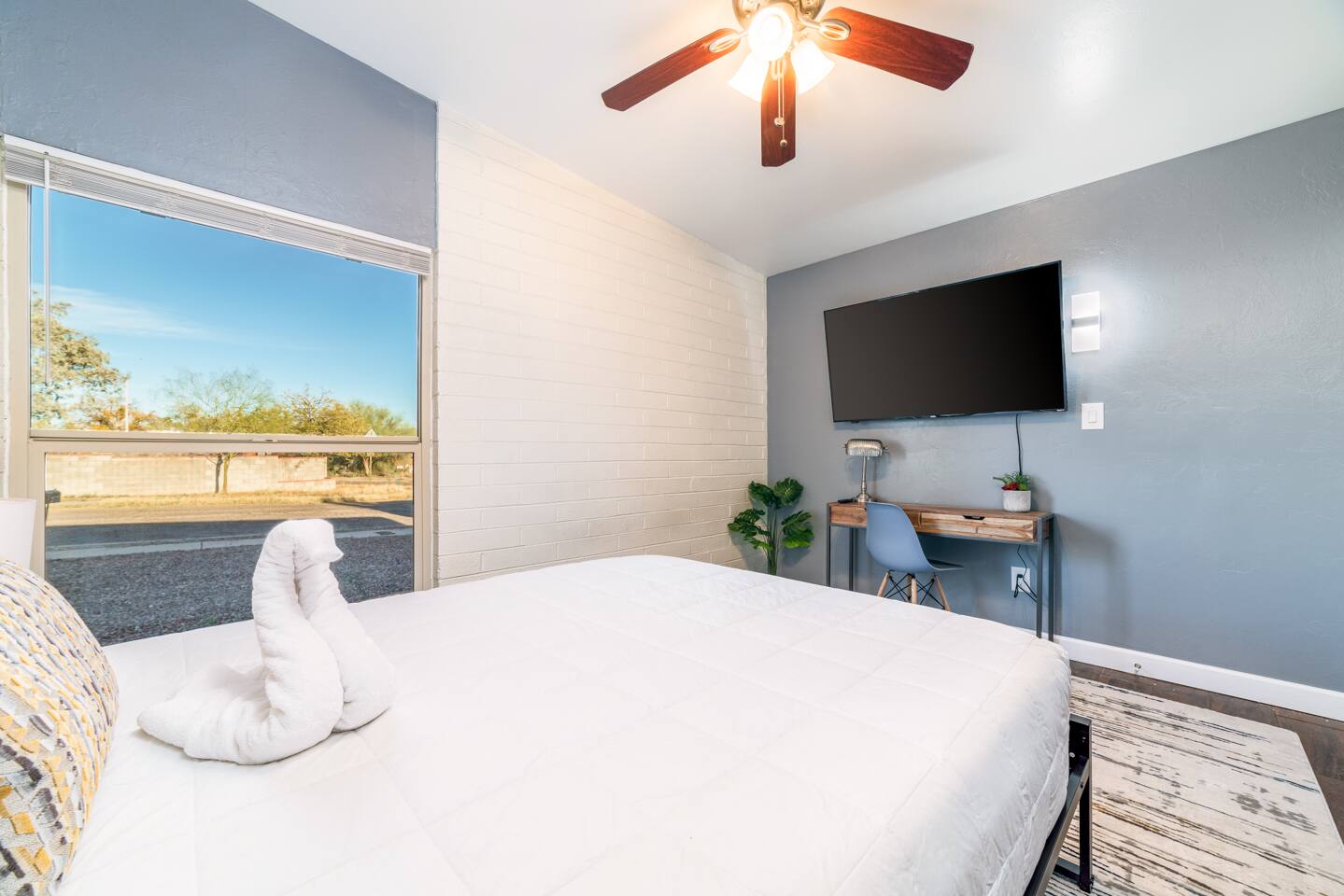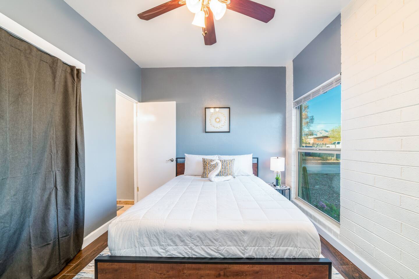 This stylish place to stay is perfect for group trips. Minutes away from the University of Arizona & Downtown Tucson! Located in the heart of Tucson. An amazing cheerful 4 bedroom houses with a backyard meant to entertain. Enjoy a gated sparkling and amazing swimming pool. Create memories in our wonderful home next to our fire pit lounge area.