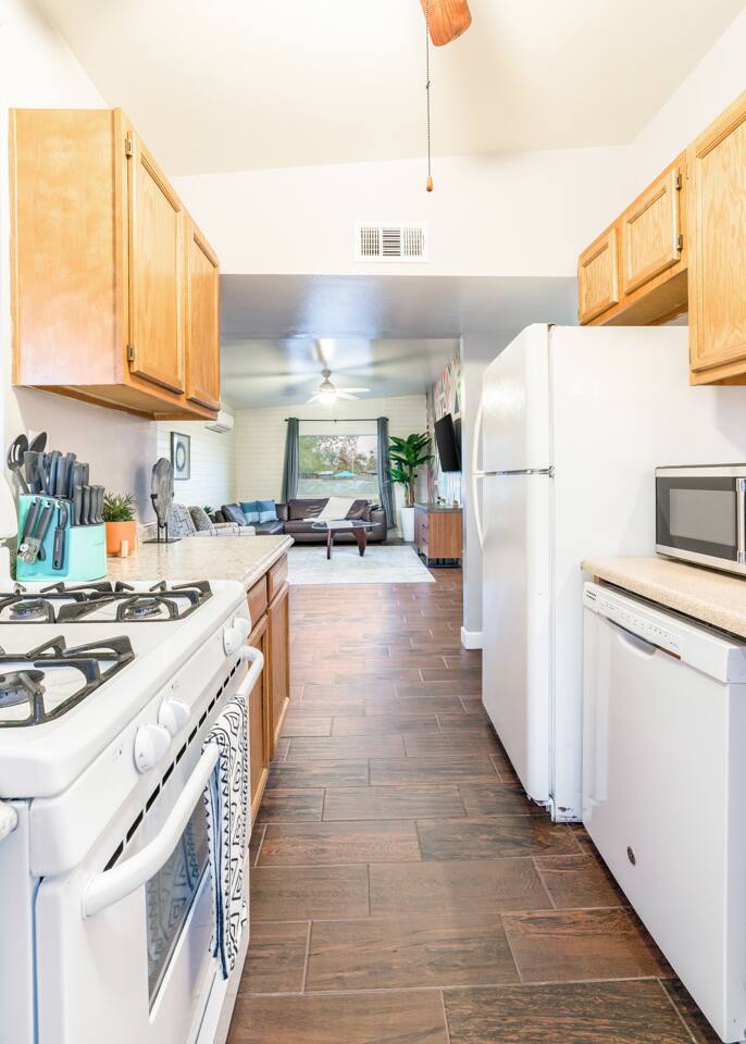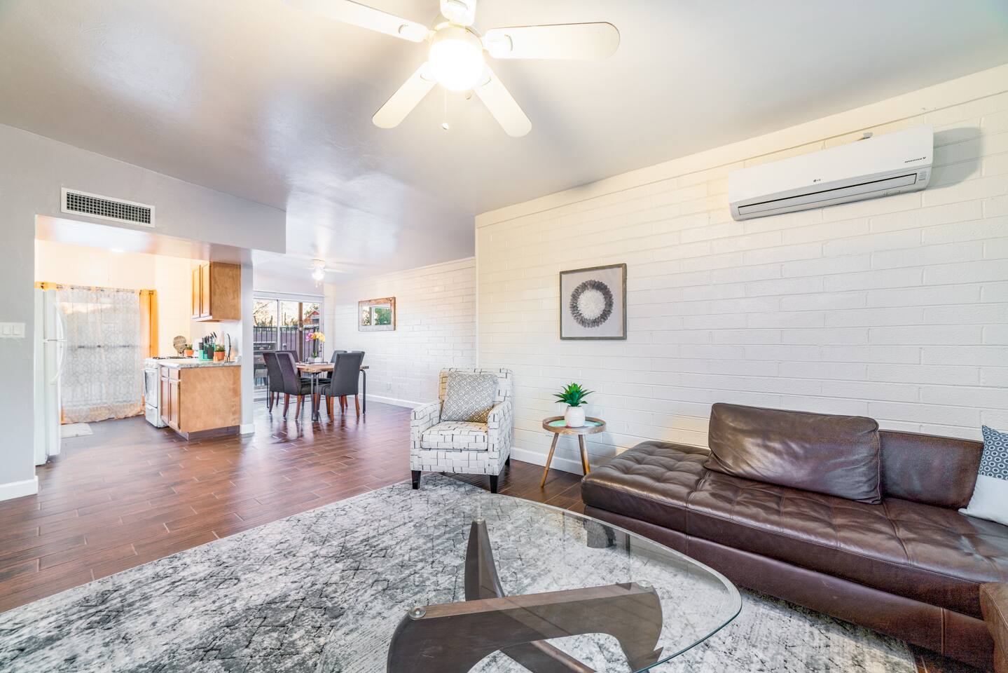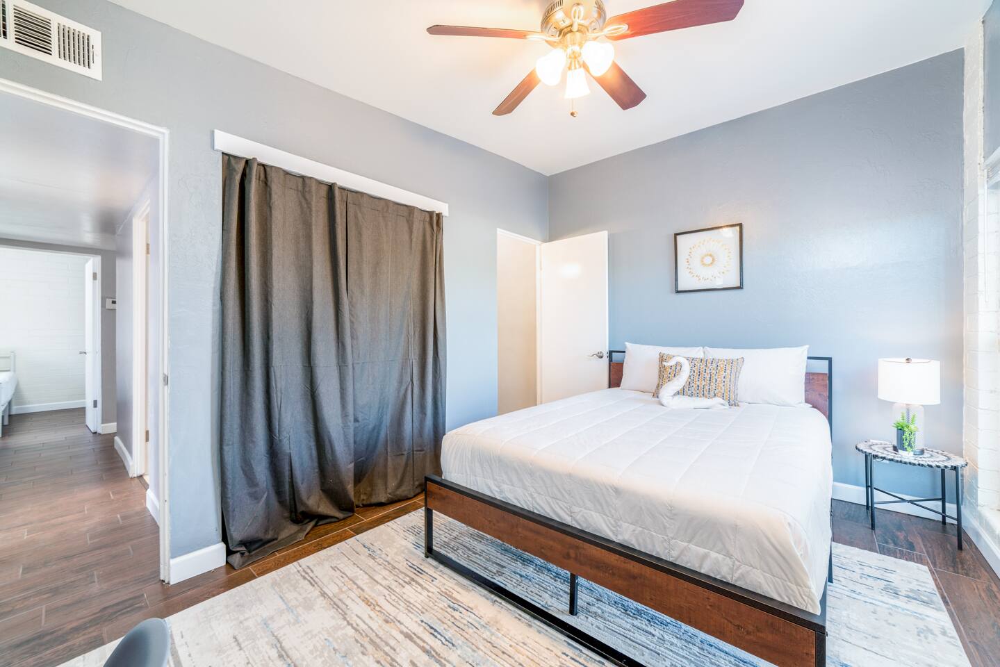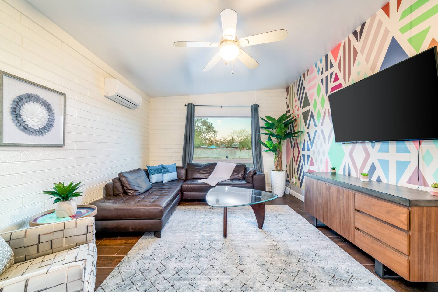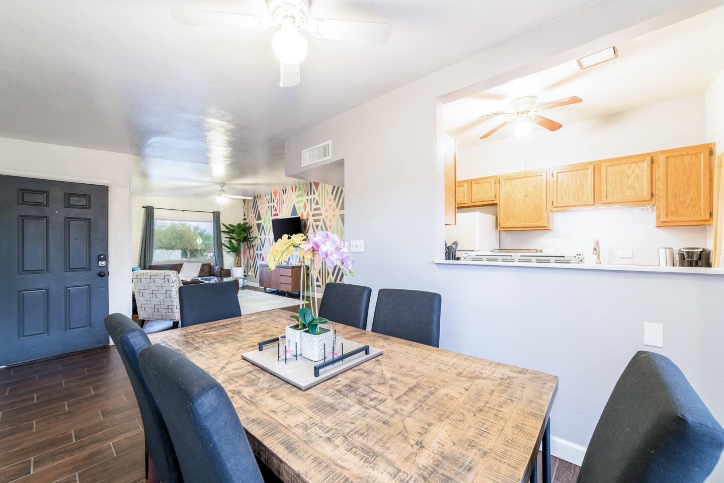 This stylish place to stay is perfect for group trips. Minutes away from the University of Arizona & Downtown Tucson! Located in the heart of Tucson. An amazing cheerful 4 bedroom houses with a backyard meant to entertain. Enjoy a gated sparkling and amazing swimming pool. Create memories in our wonderful home next to our fire pit lounge area.