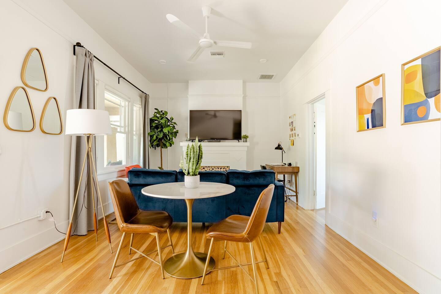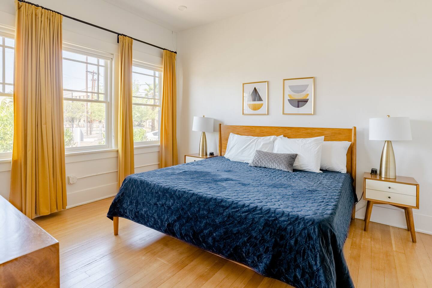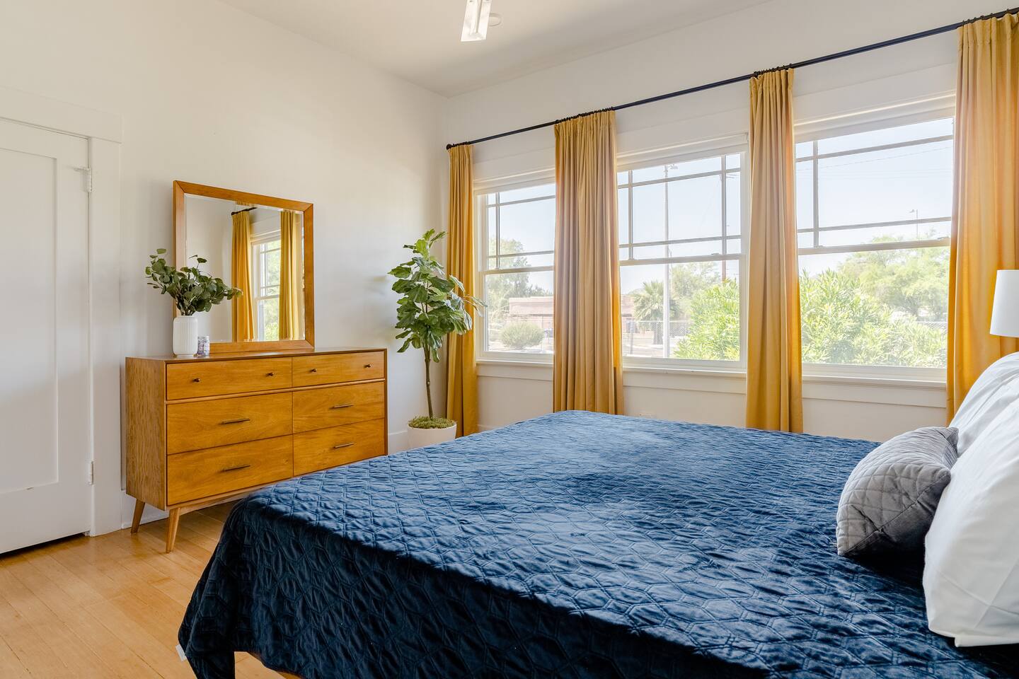 The mid century modern decor gives this historic bungalow a fresh ambiance. It has everything you need for a 2 night or month long stay. The kitchen is fully equipped with anything you might need for a home cooked dinner. Enjoy a relaxing evening watching a movie on the 60" smart tv. The bedroom features a king size bed with a hybrid memory foam mattress. Top features: -King Size Bed -60” Smart TV (w/ standard cable service) -Fast Internet -3 blocks from the heart of Downtown Tucson -3 minute walk to Tucson Convention Center -6 minute drive to the University of Arizona TPT License #21550337