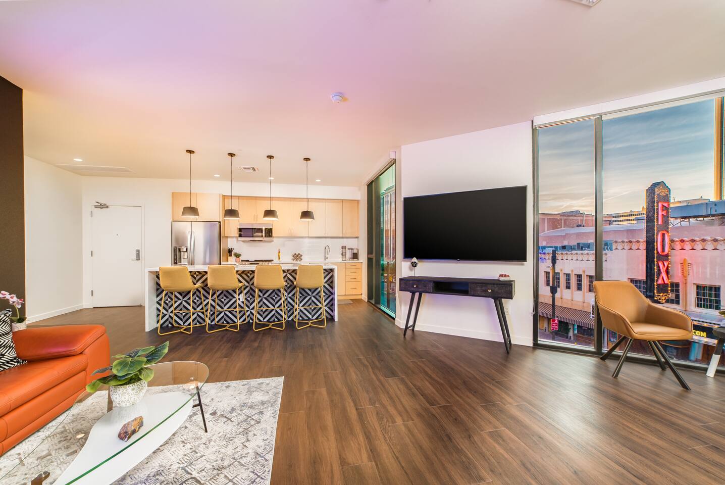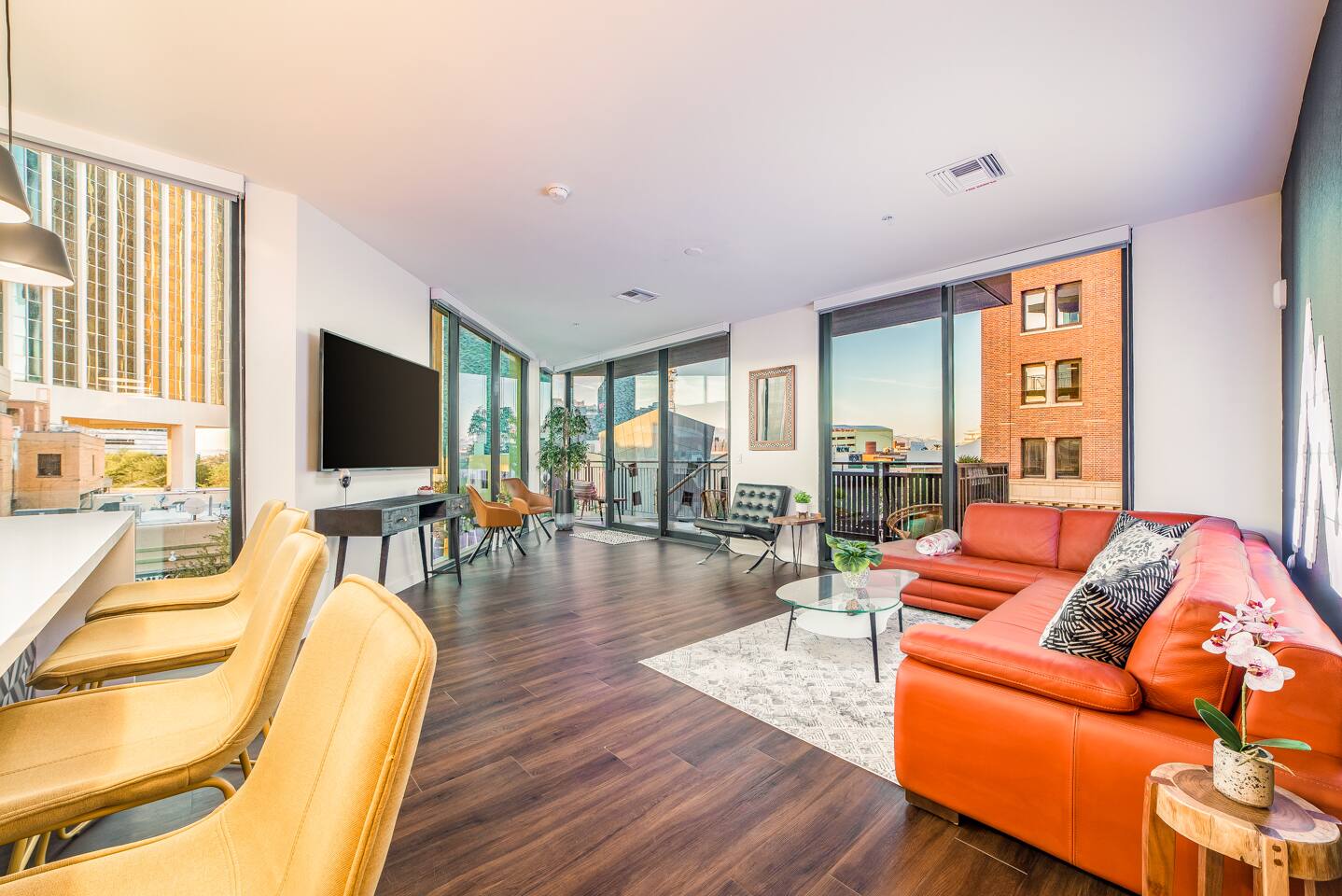 Travel in Style at Tucson's Newest and Most Desirable Location: Rendezvous' Urban Flats ◆ Minutes from theaters, restaurants, nightlife, and everything else downtown has to offer ◆ On the Tucson Streetcar path for easy access to many other destinations including the UofA ◆ Fully Stocked Kitchen ◆ Large Balcony with Amazing Views ◆ Washer / Dryer ◆ Self Check-In ◆ 1 Parking Garage Pass