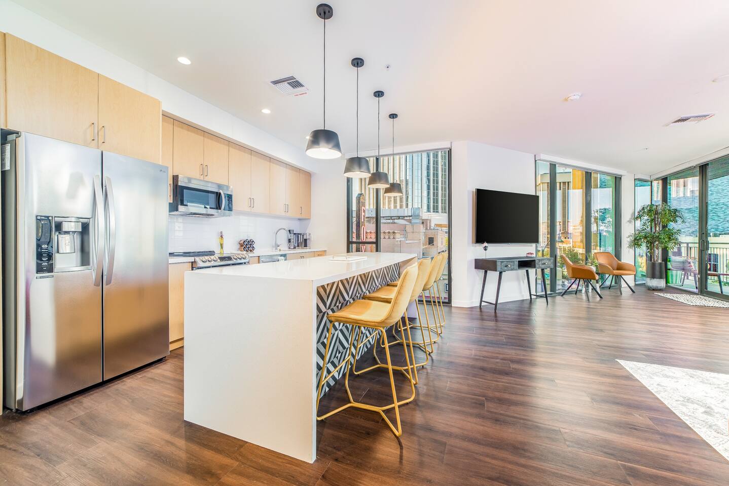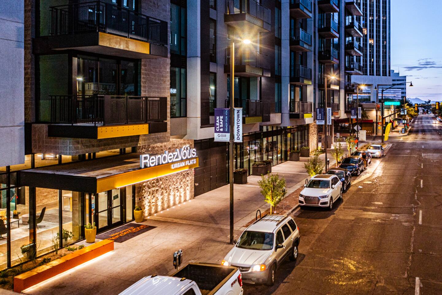 The ultimate urban-style living in the heart of downtown Tucson, RendezVous features a luxury floor plan with convenience at your fingertips. RendezVous Urban Flats is the ideal place to balance life, work, and play. Minutes from theaters, restaurants, nightlife, and everything else downtown has to offer. Our home feature quartz countertops with waterfall edge, elegant finishes, a full-sized washer and dryer, and oversized balconies with cityscape views. Work from home in our comfortable yet gorgeous co-working space, clubhouse, and conference room. Gather with your neighbors and friends at our outdoor entertainment plaza!