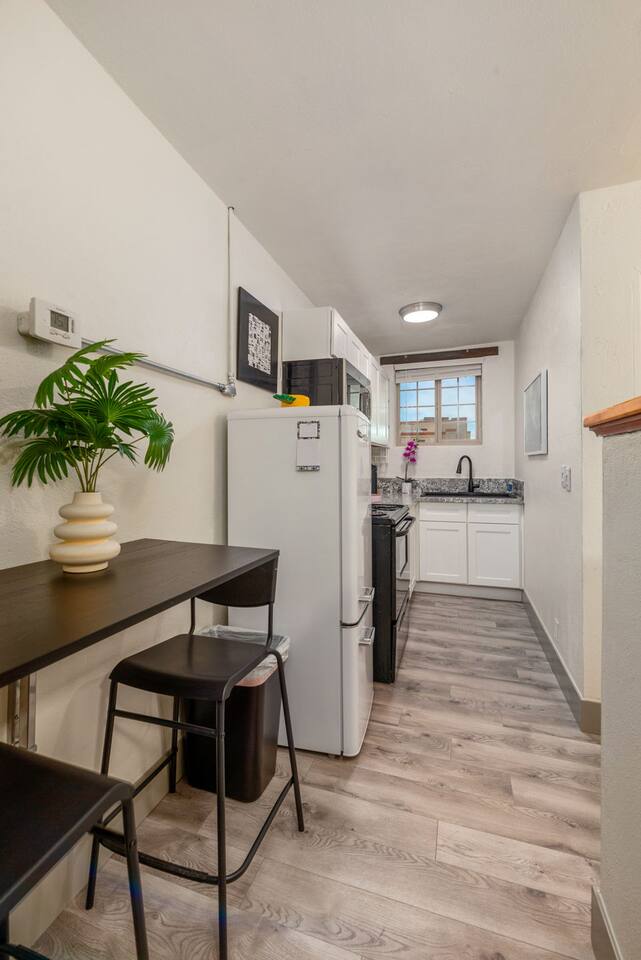 Welcome to "The Loft" – a unique two-story retreat in central Tucson at Stone and University. Enjoy a vibrant first-floor bedroom with a full bathroom and washing machine. The second floor features a fully equipped kitchen, dining area, cozy living room, an additional bedroom, and a unique bathroom setup. With high-speed WiFi, it's perfect for work or leisure. Experience the authentic city feel and beautiful evening light.
