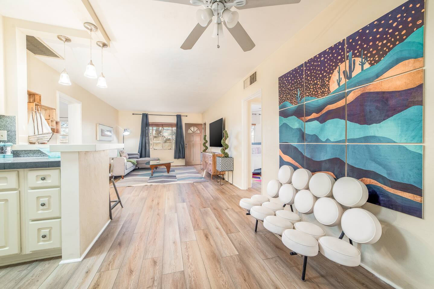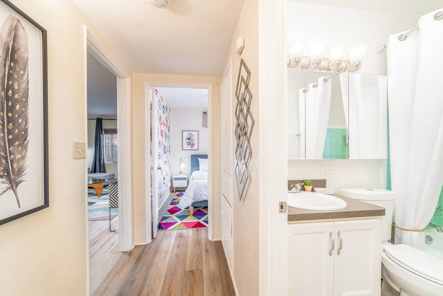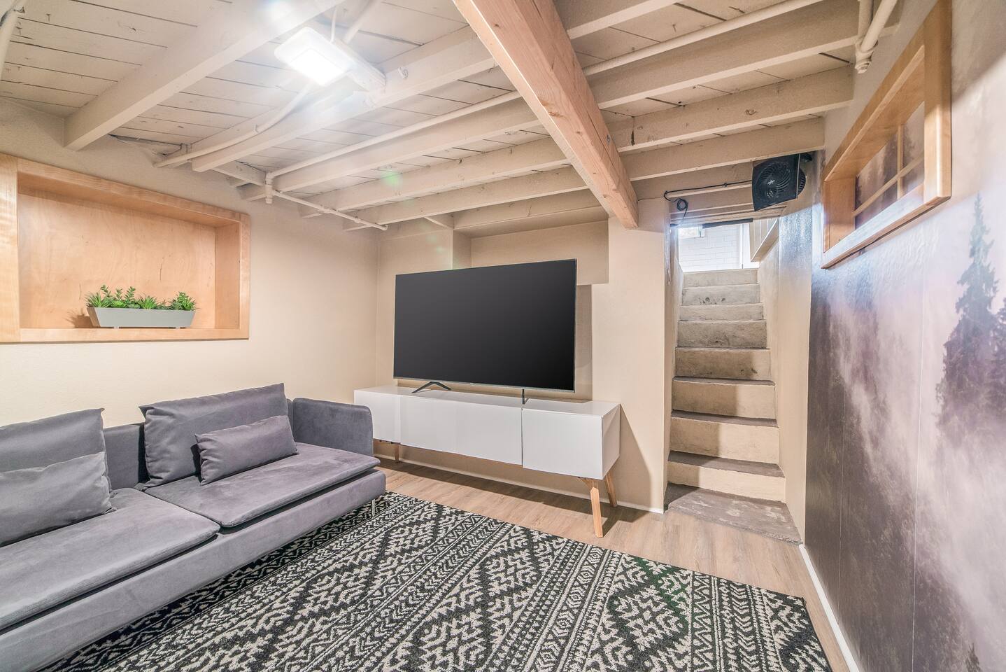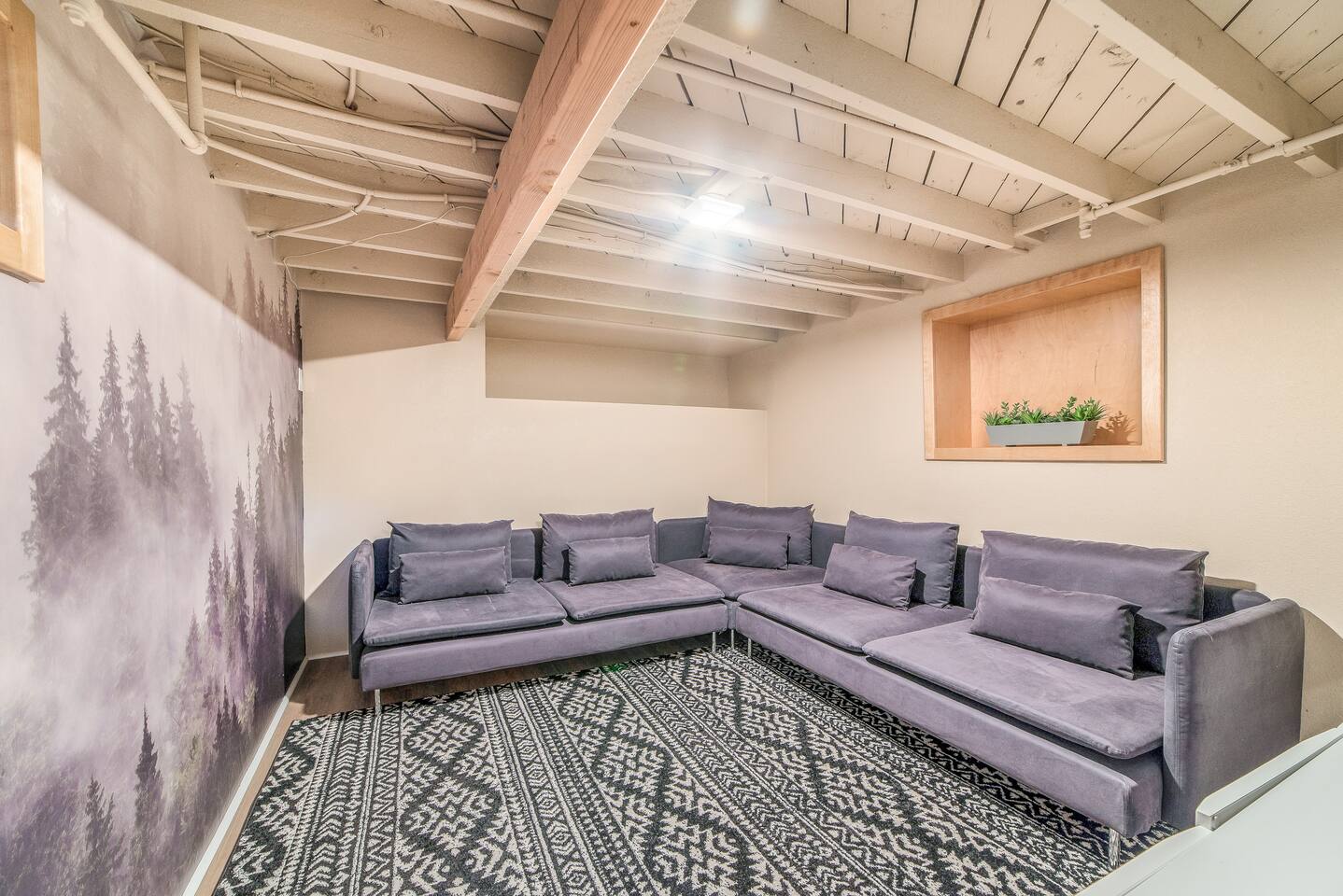 Travel in Style at this Vibrantly Decorated Home with Tons of Amenities: ◆ Cornhole Set ◆ Forest-Themed Movie Room Basement ◆ Gigabit Internet (1000MB/S) ◆ Board Games ◆ Perfect for Large/Multiple Families ◆ BBQ ◆ Fully Stocked Kitchen ◆ Keurig with K-Cup Selection ◆ Washer and Dryer ◆ Luxury Foam Mattresses ◆ Premium Linens ◆ Self Check-In ◆ Off Street Parking
